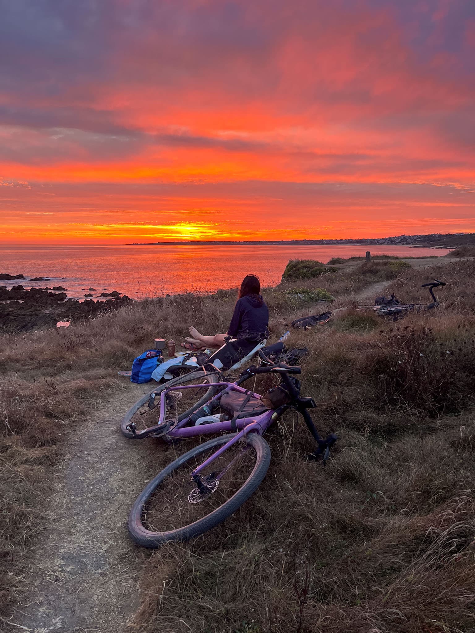 « Pendant notre trip, on finit par approcher les 100 kilomètres, et pas loin de 7 crêpes par tête quotidiennement ! On passe nos soirées devant les couchers de soleil, on a vraiment de la chance avec la météo. Il n’y a qu’un soir où nous avons utilisé l’application “Warm Showers” pour planter la tente chez un couple génial qui nous a accueillis au sec pour la nuit. »