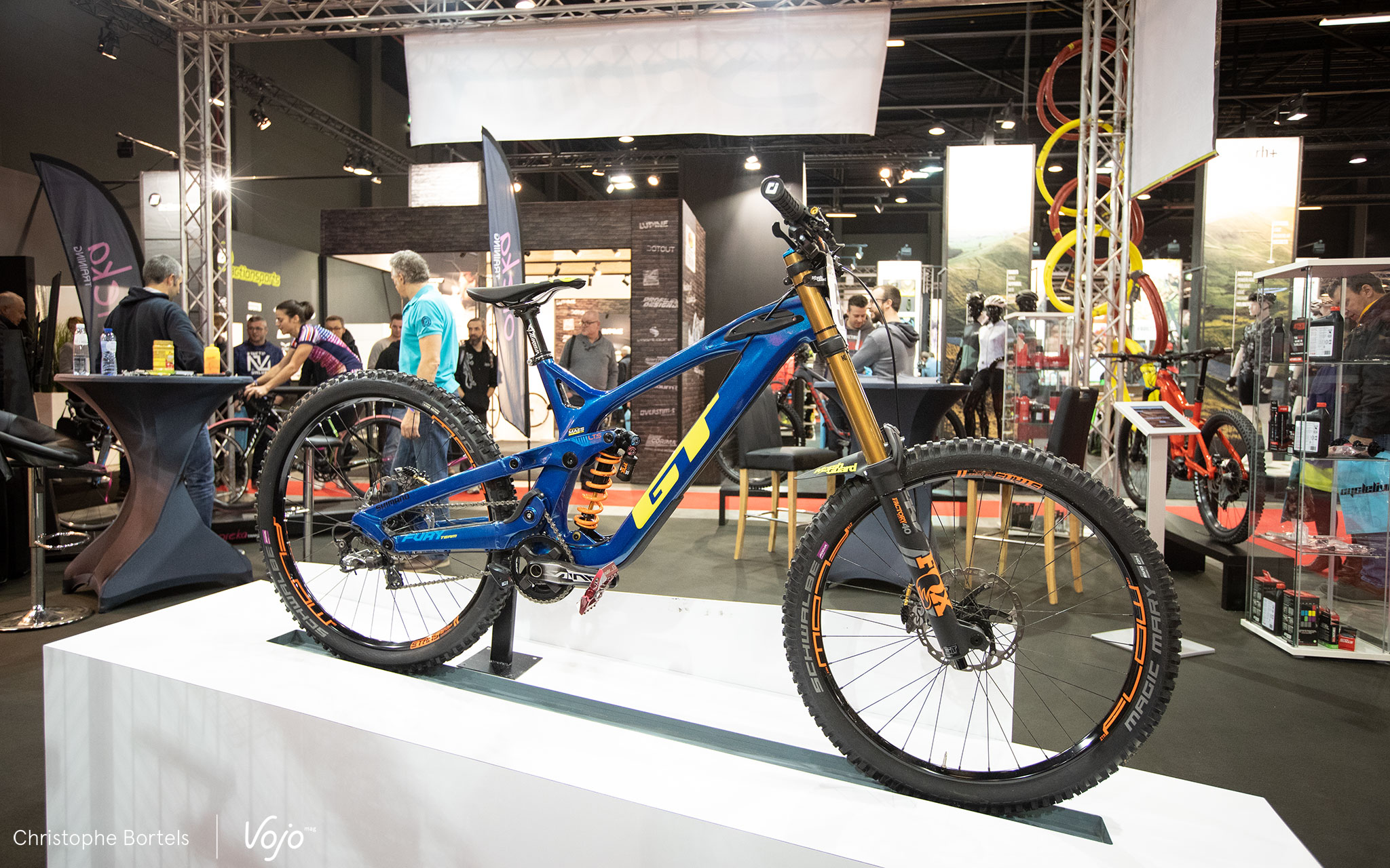 Vous comptiez sur Velofollies pour choisir le vélo de descente de vos rêves ? C’est pas gagné… L’un des seuls exposés (si pas le seul), c’est sur le stand Sabma avec le GT de Martin Maes, qui l’a mené sur la plus haute marche du podium en coupe du monde à La Bresse puis à la 2e place des championnats du monde à Lenzerheide.