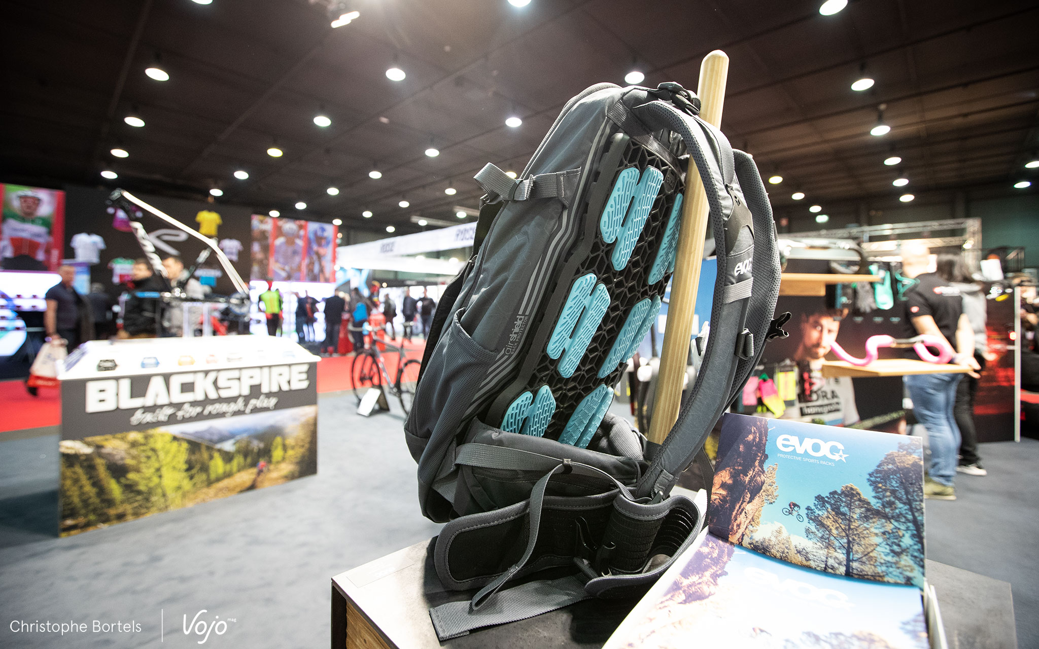 Le Neo 16l de Evoc a aussi attiré notre attention, notamment grâce à son Airshield Protector, une protection dorsale fixée à l’extérieur du sac et qui met particulièrement l’accent sur la ventilation et l’ergonomie.