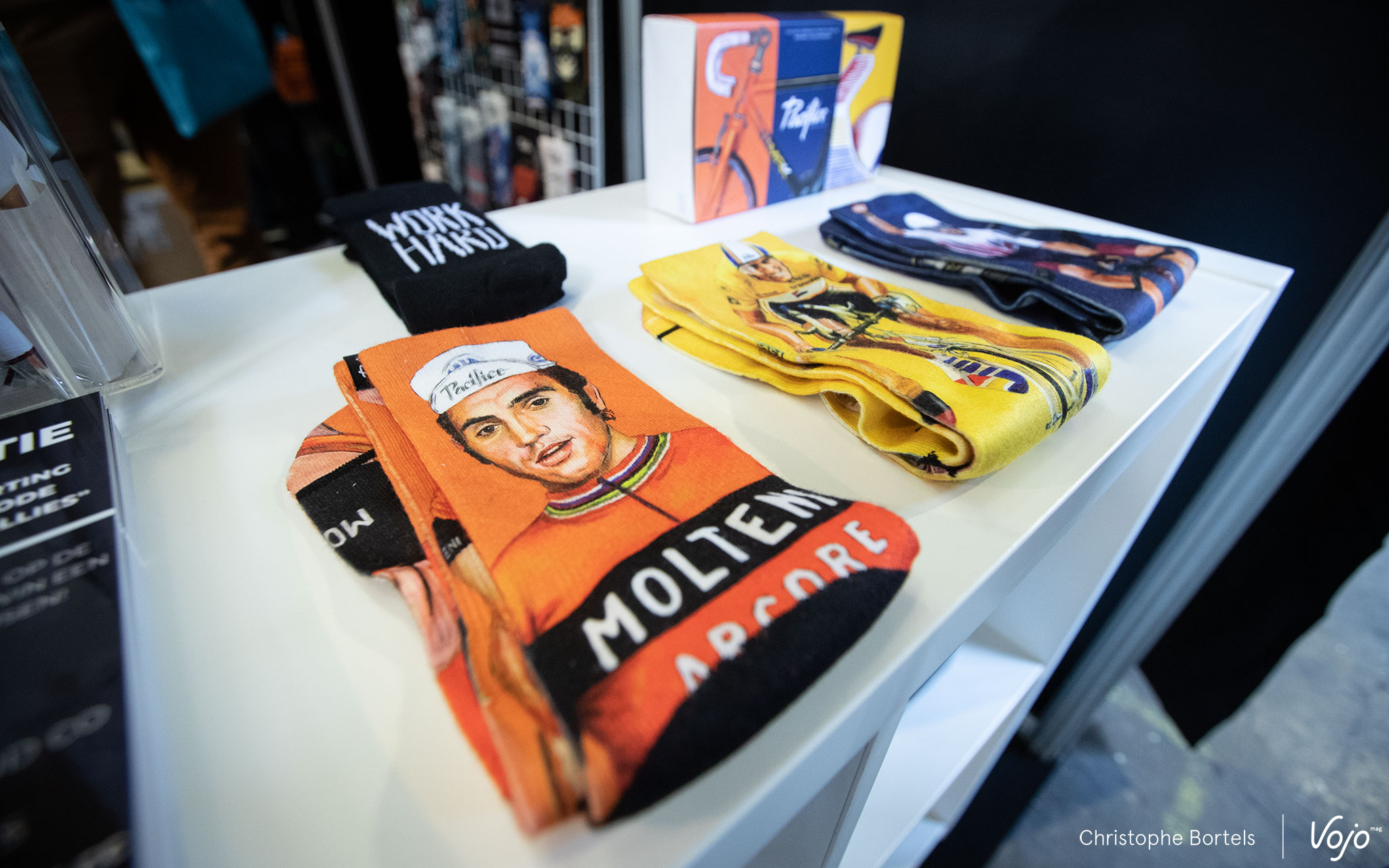 Et puis des chaussettes, beaucoup de chaussettes. Le plus souvent avec des couleurs. Beaucoup de couleurs… Ce trio Merckx/Indurain/Wiggins est proposé par Pacific and Co. Socks.
