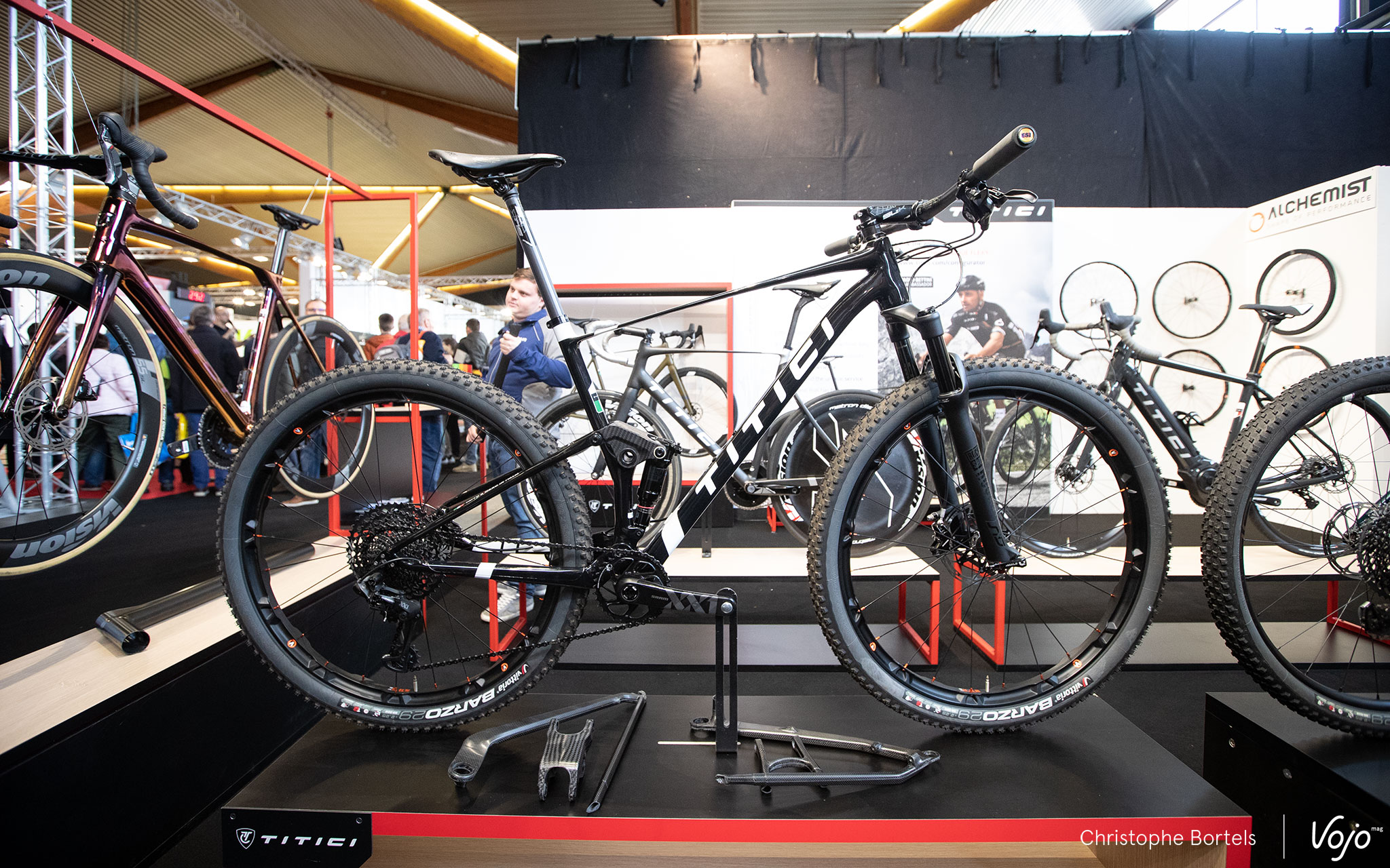 Chez Leon, on pouvait admirer cet Effectus, un endurigide 29″ à la géométrie impressionnante. La fourche rouge par contre, on est moins convaincu…
