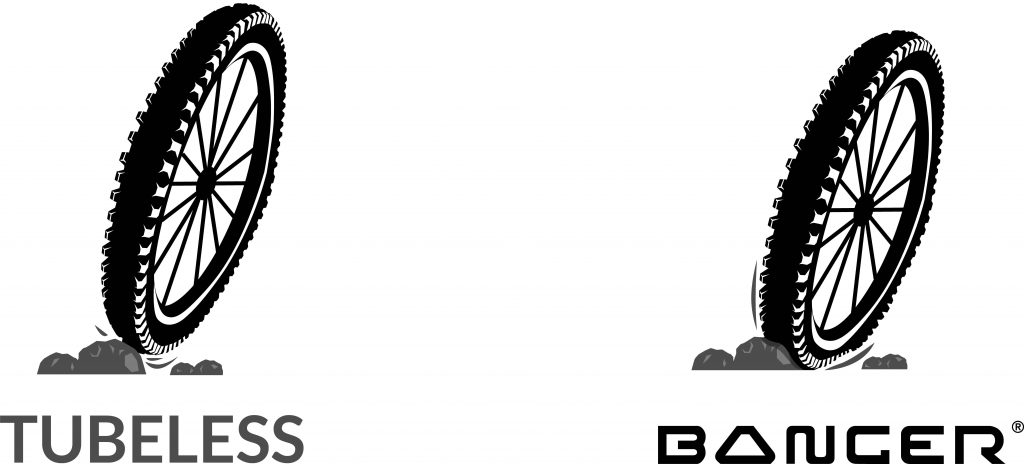Les tests menés par un laboratoire indépendant ont montré que la perte en résistance au roulement n’est que de 1% sur sol lisse, alors que le système offre des avantages importants en usage VTT. A noter qu’on peut si on le souhaite ajouter un peu de préventif pour se prémunir des crevaisons par épines. Mais il ne s’agit là que de conserver la pression car en cas de perte d’air, il est possible de rouler uniquement sur le Banger sans aucun risque. Mais avec une détérioration du comportement.