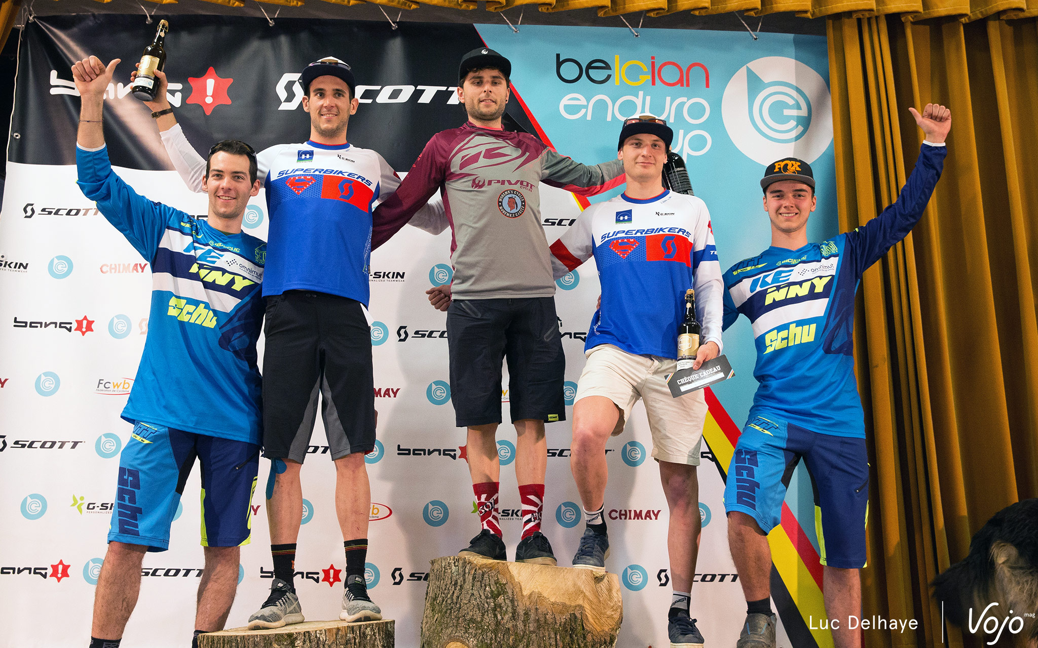 Le top 5, de gauche à droite : Johnny Magis (4e), Julien Soussigne (2e), Ludovic Oget (1er), Nicolas Daniels (3e) et Gilles Franck (5e).