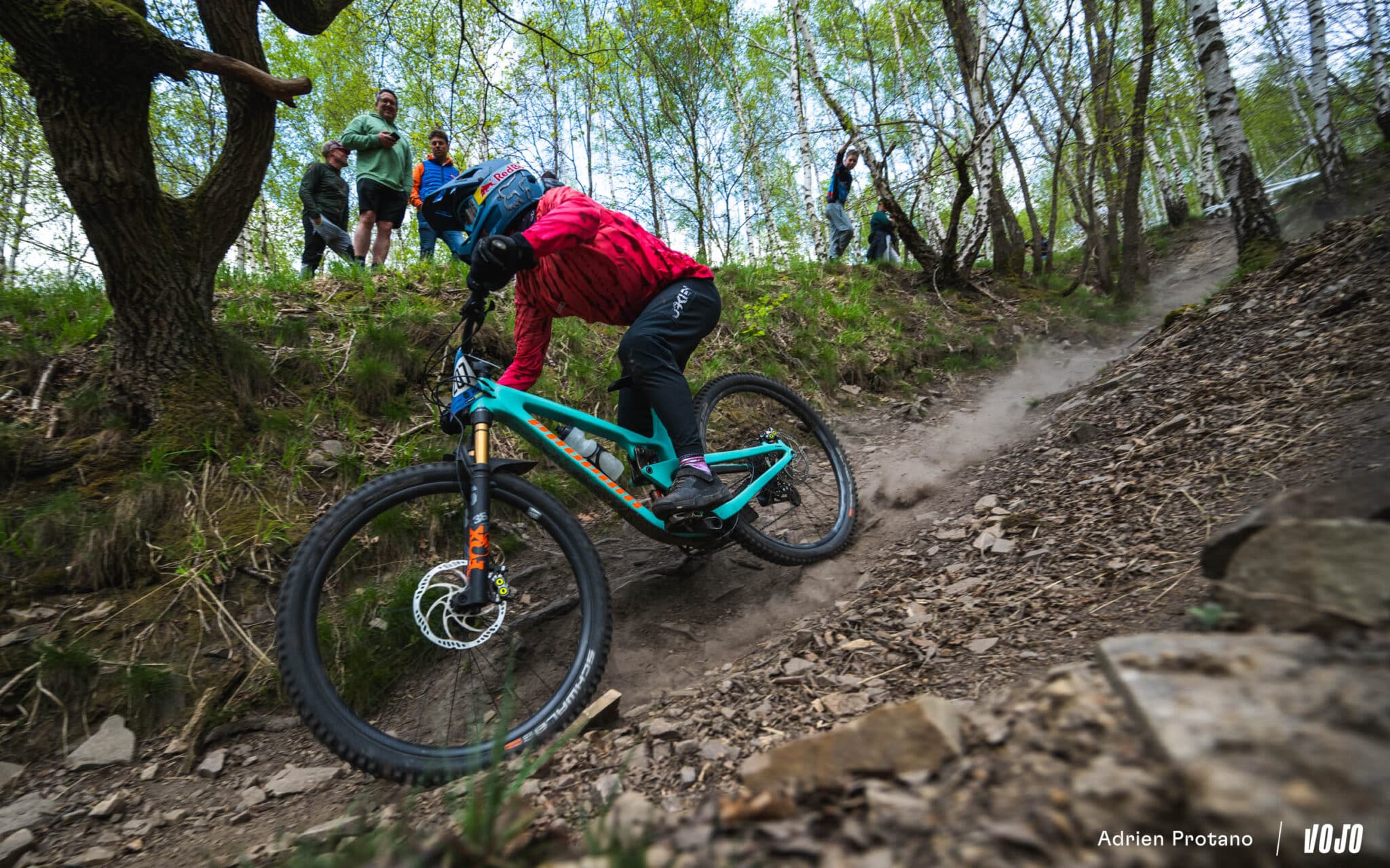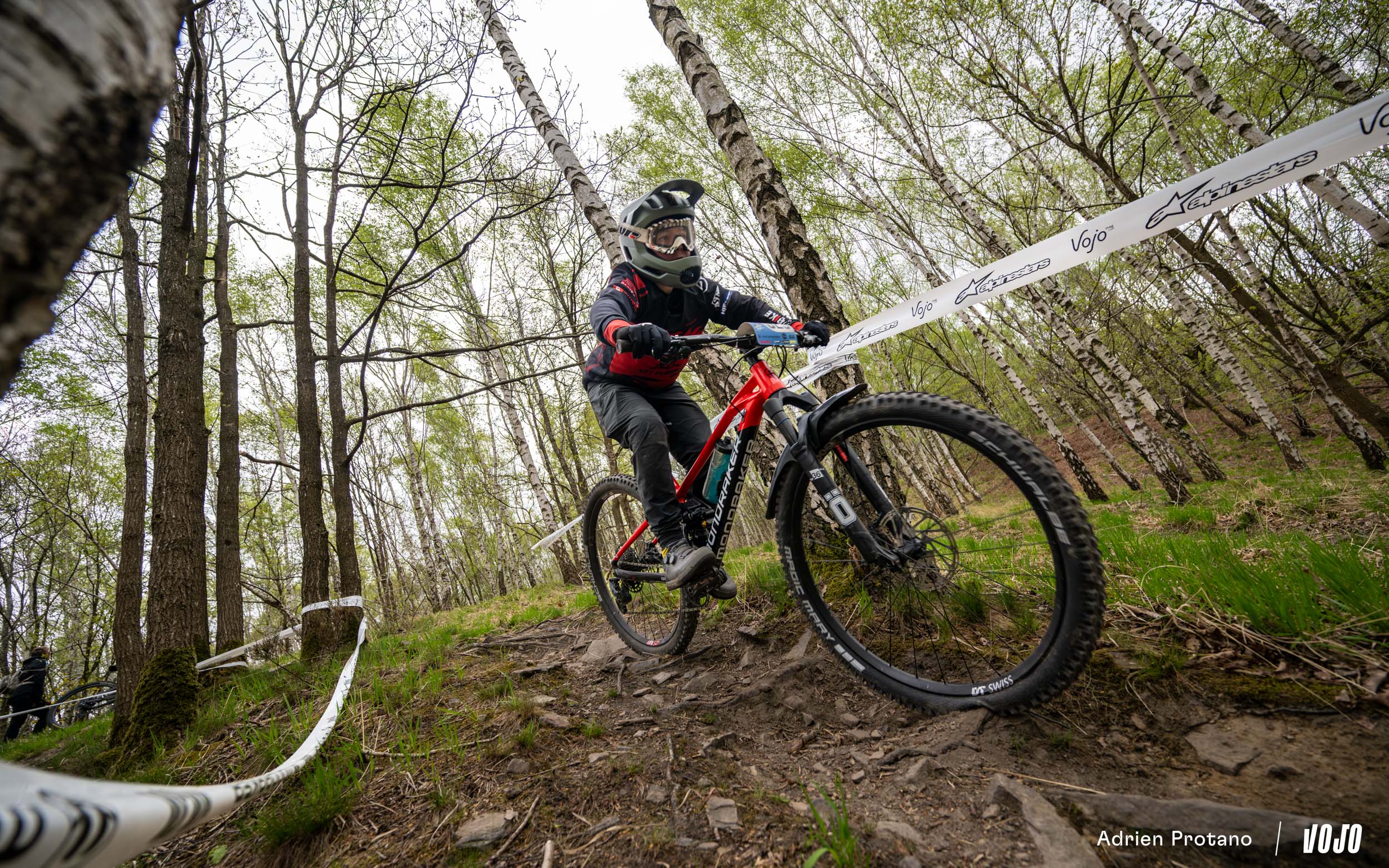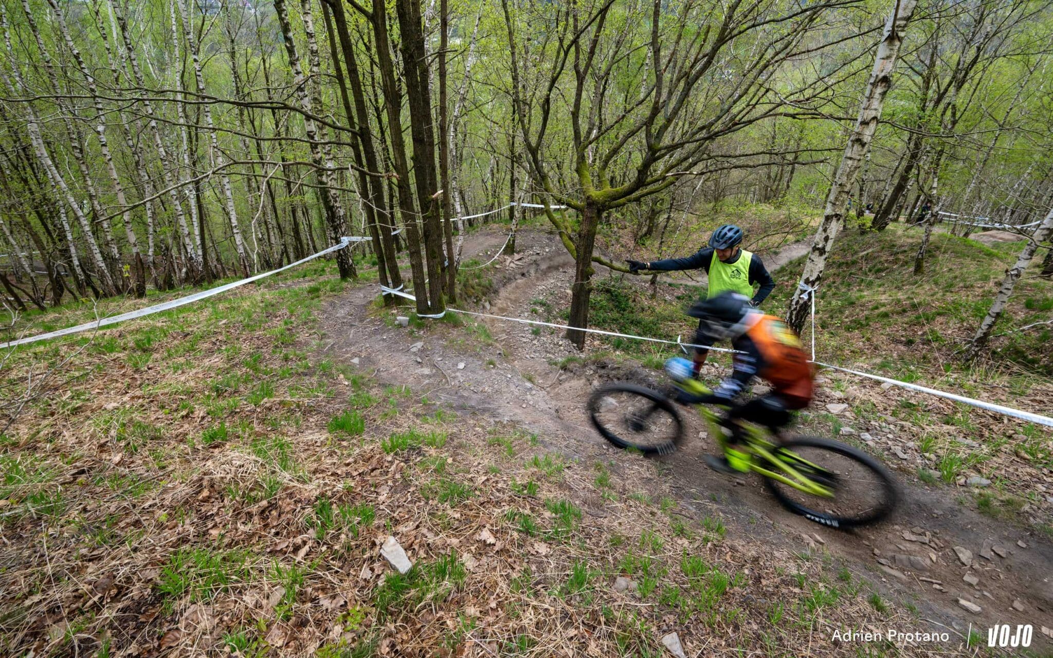 Tout d’abord car la course ne débutait justement pas sur les spéciales du trail-center, mais mettait le cap sur les forêts avoisinantes et ses petits singletracks, aussi joli visuellement qu’amusant à rouler. De quoi tenter de ramener un peu de pilotage à vue sur cette manche d’enduro, avec des spéciales défraîchies et remises en état spécialement pour la course.