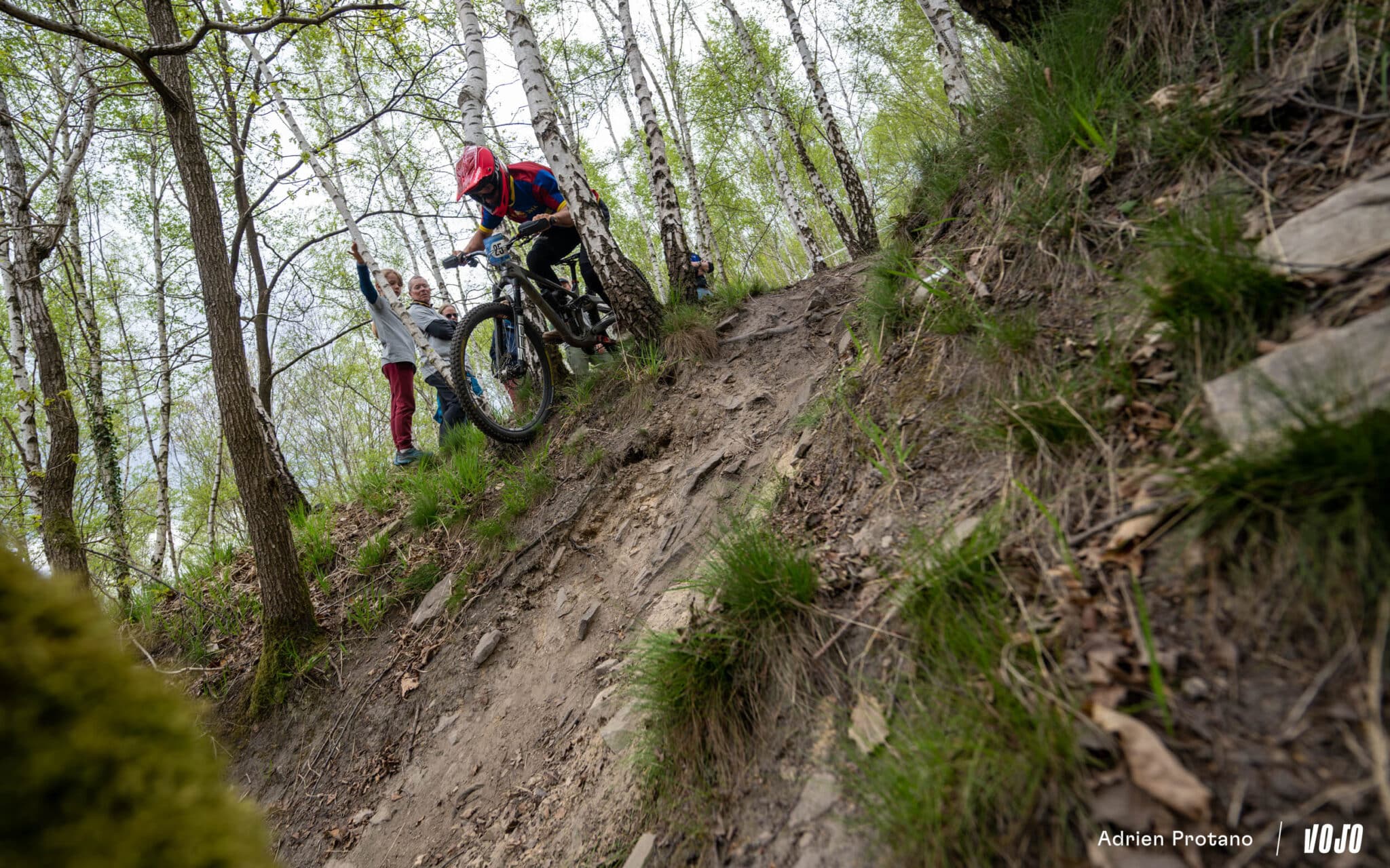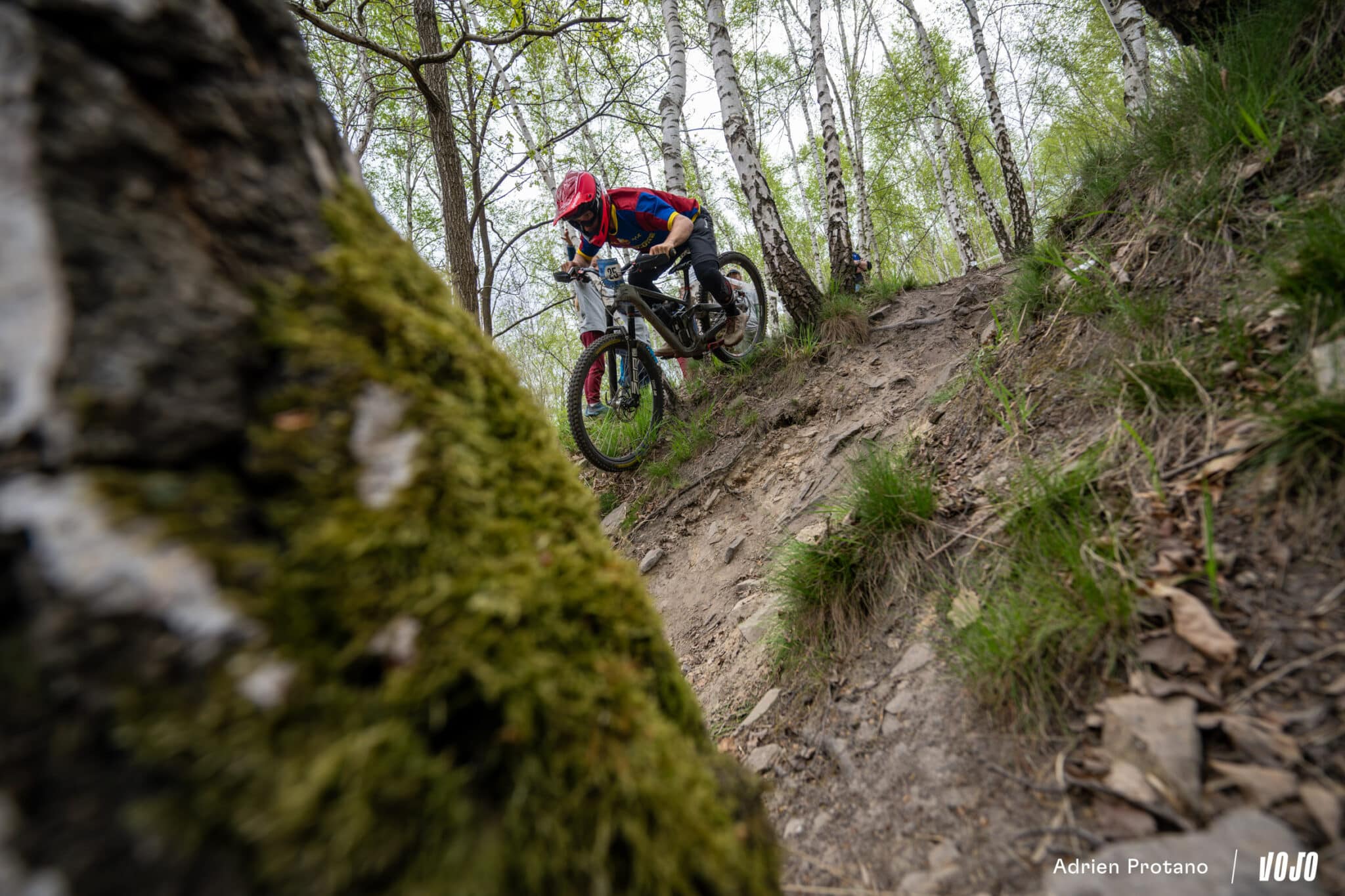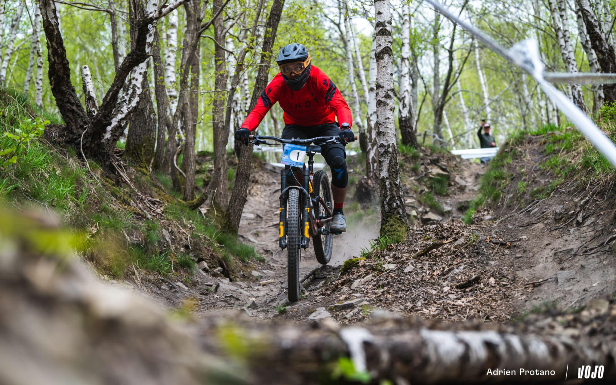Tout d’abord car la course ne débutait justement pas sur les spéciales du trail-center, mais mettait le cap sur les forêts avoisinantes et ses petits singletracks, aussi joli visuellement qu’amusant à rouler. De quoi tenter de ramener un peu de pilotage à vue sur cette manche d’enduro, avec des spéciales défraîchies et remises en état spécialement pour la course.