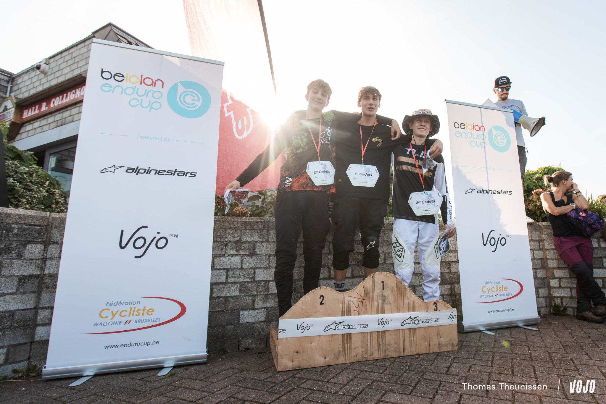 Tir groupé chez les Cadets qui terminent respectivement 14e, 15e et 16e du classement scratch ! Si l’ordre sur le podium s’est disputé tout au long de la journée, c’est finalement Briek Van Duyse qui s’impose suivi de Elvis Dermience, tandis que Alexandre Morovich monte sur la troisième marche de la boite.