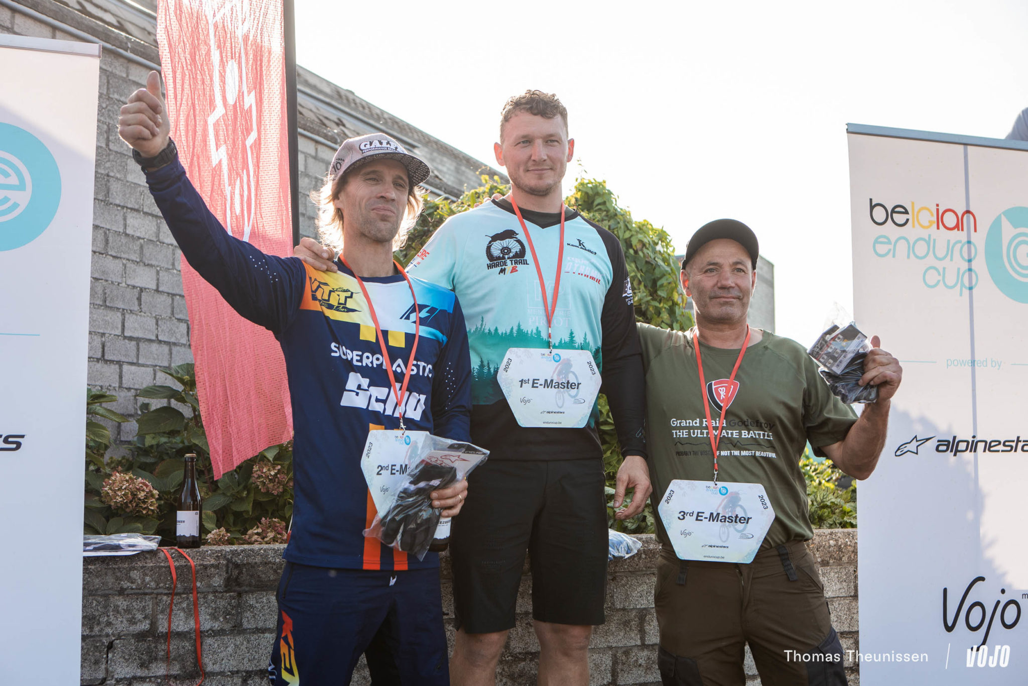 Pour les e-bikes, le gagnant du jour Sybe Van Hoeymissen remporte le général Elites devant Joakim Michiels (2e) et Valentin Demissy (3e), tandis que chez les E-Masters, Christopher Ballon l’emporte devant Patric Maes (2e) et Christophe Talon (3e).