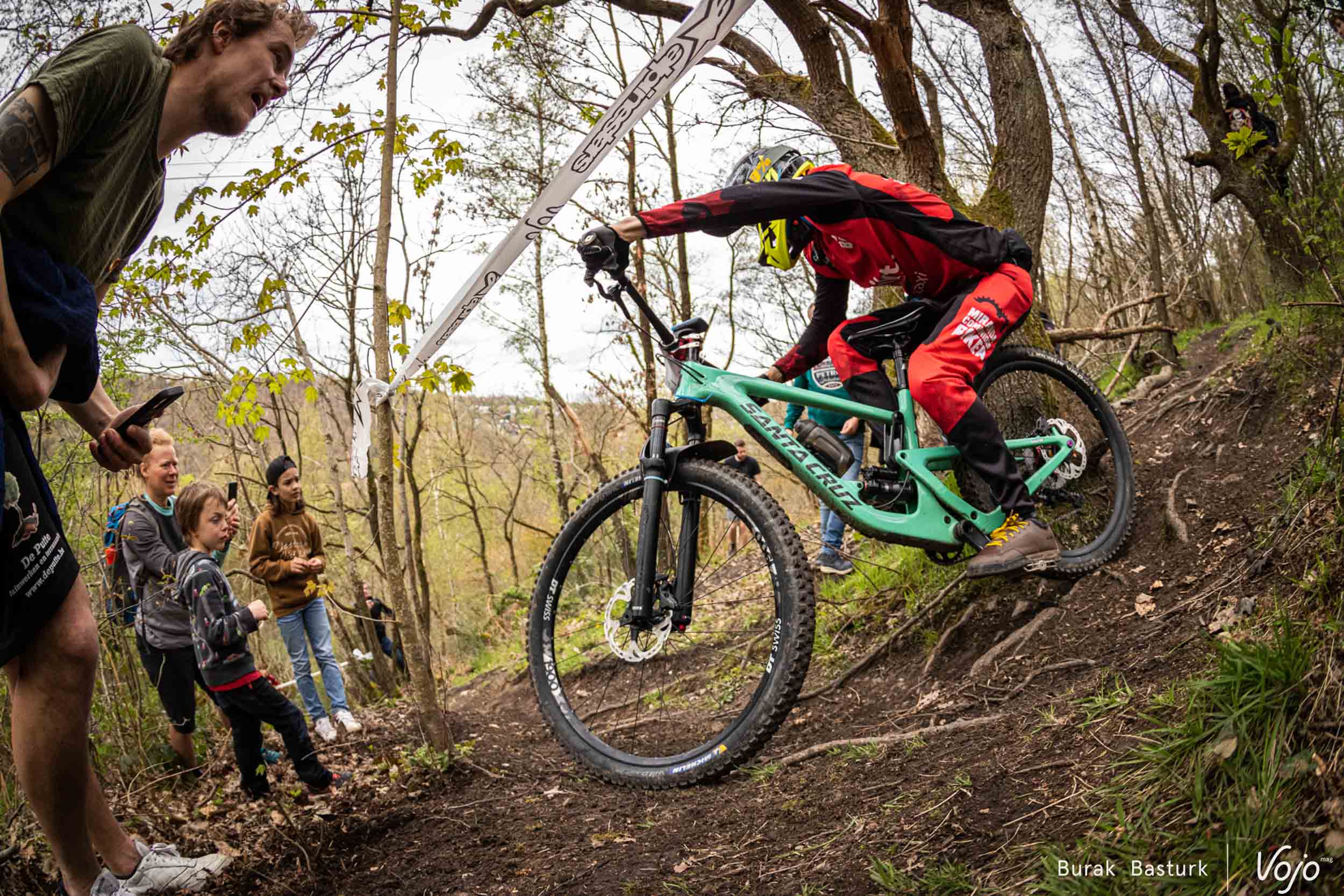 Au niveau des pilotes, même si Martin Maes n’était pas au départ pour se concentrer sur ses objectifs internationaux, et si Gilles Franck, vainqueur l’an dernier et régulièrement dans le top 30 en EWS était absent pour cause de blessure, il y avait tout de même un très beau plateau composé de pilotes belges, français et hollandais, mais aussi d’une grosse délégation allemande et de quelques pilotes venus de loin, comme cet Argentin qui a profité de son séjour en Belgique pour venir goûter à nos courses d’enduro !