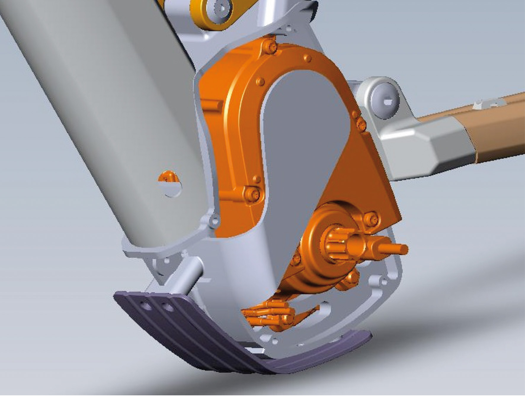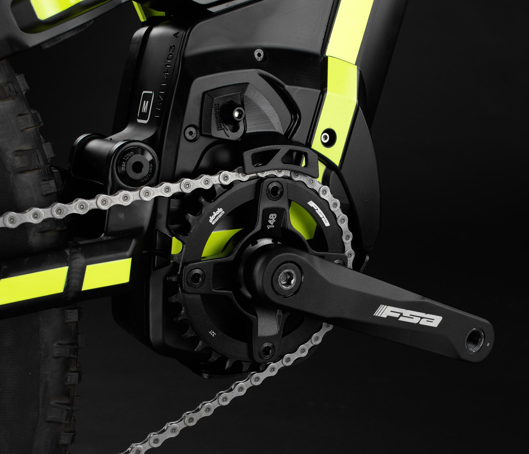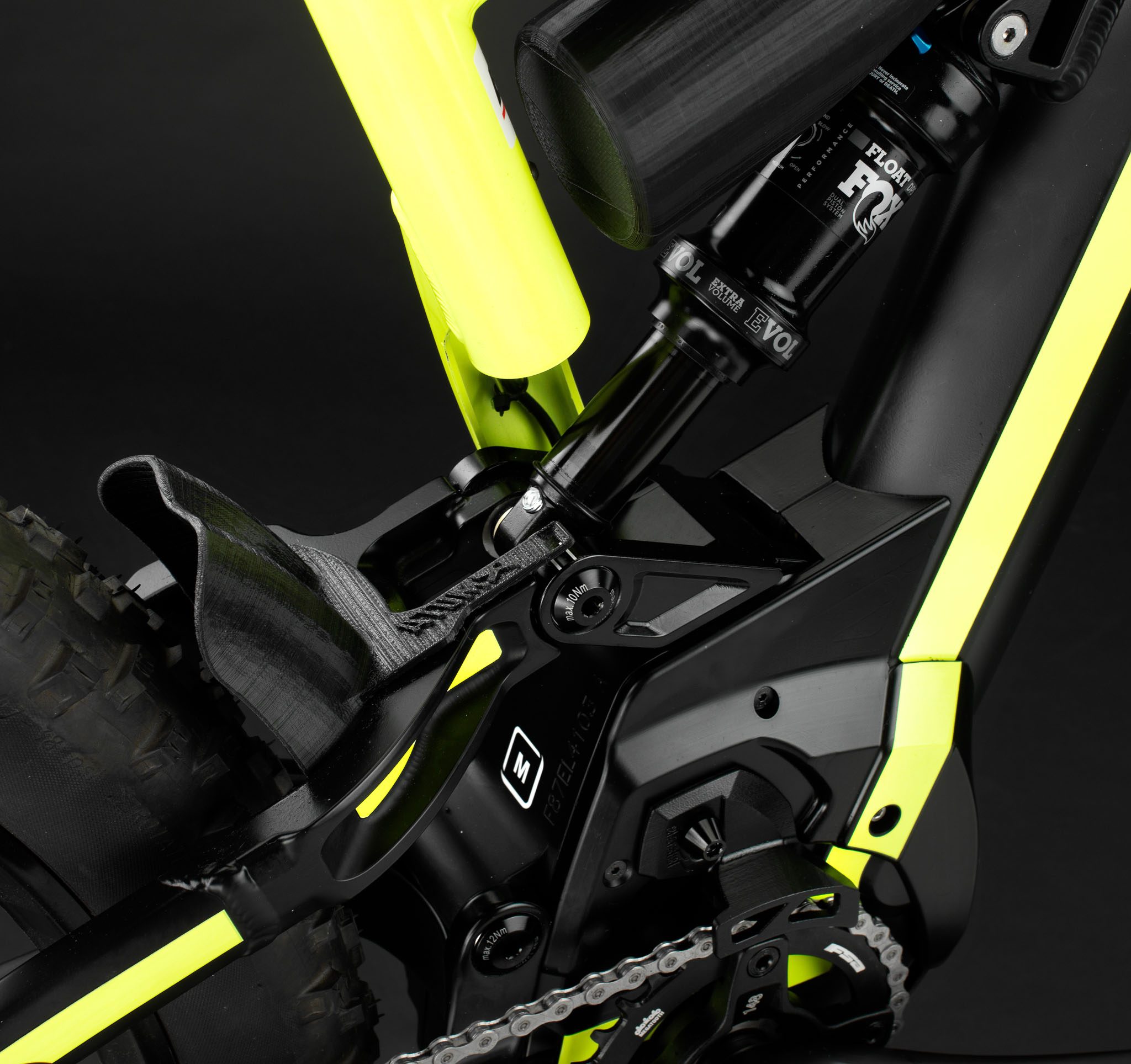 Comme Specialized, qui utilise également une version de ce moteur sur son fameux Levo, BH a cherché à améliorer la dissipation de la chaleur au niveau du moteur, tout en le protégeant. Le méthode retenue est d’ajouter un petit sabot en aluminium sous le moteur qui sert à la fois de pare-choc et à canaliser l’air.