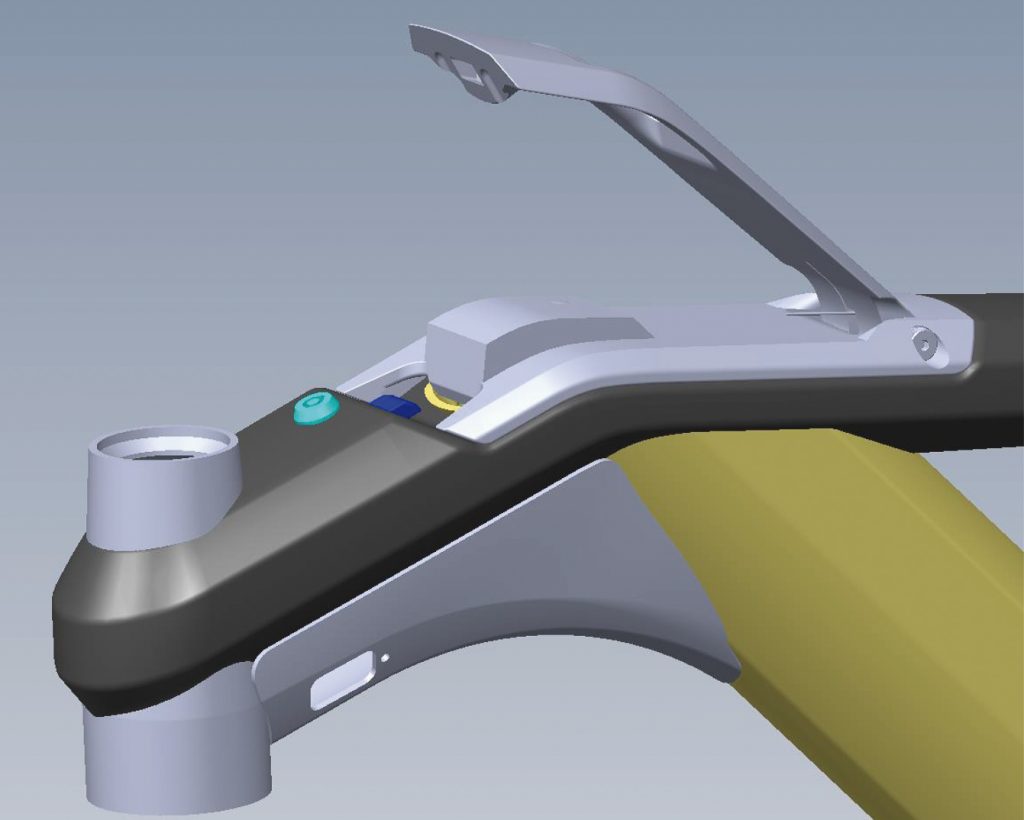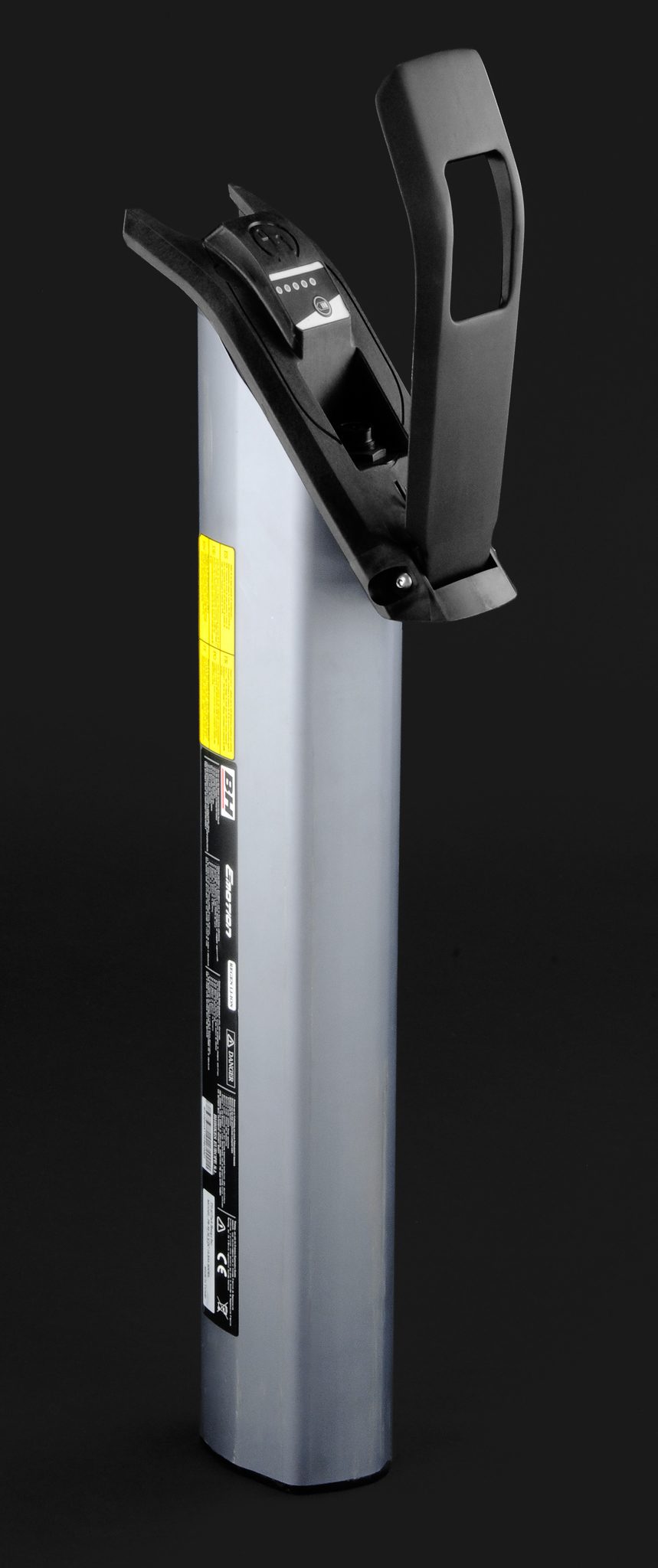 Autre originalité : on accède à cette batterie par le haut du cadre grâce à une grande trappe qui s’ouvre non pas uniquement via une clé mais via un… bracelet connecté. S’insérant entièrement dans le tube diagonal, la batterie est aussi rechargeable sans être retirée, via un port externe.