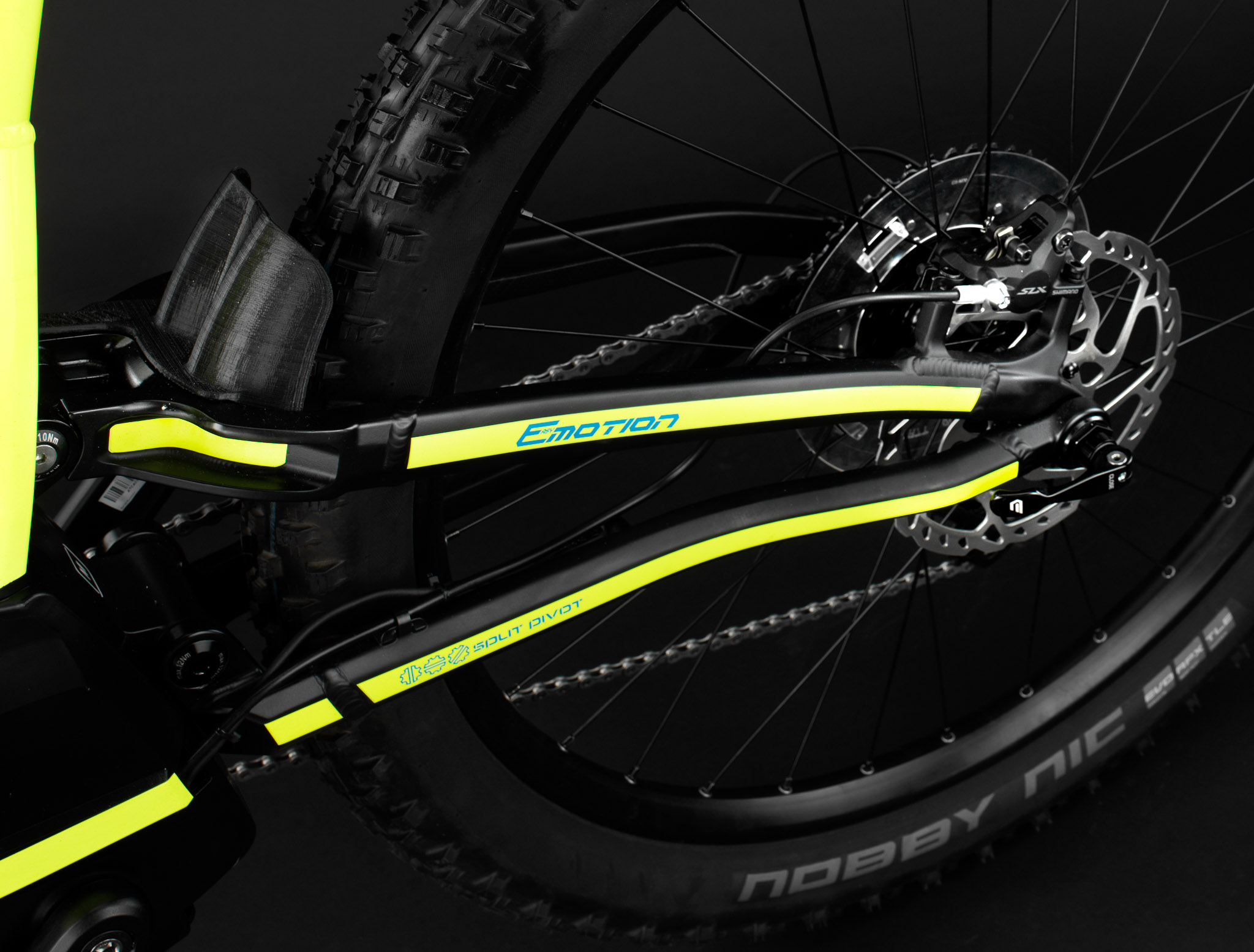 Pour schématiser, sur le BH Atom X, on trouve donc un tube supérieur de forte section, dans lequel vient se loger la douille de direction puis, un peu plus loin, le tube diagonal dans lequel la batterie prend place sur toute la longueur. Sur les fulls, un tube de selle interrompu et suivi d’un renfort asymétrique vient encore accentuer la particularité du cadre.