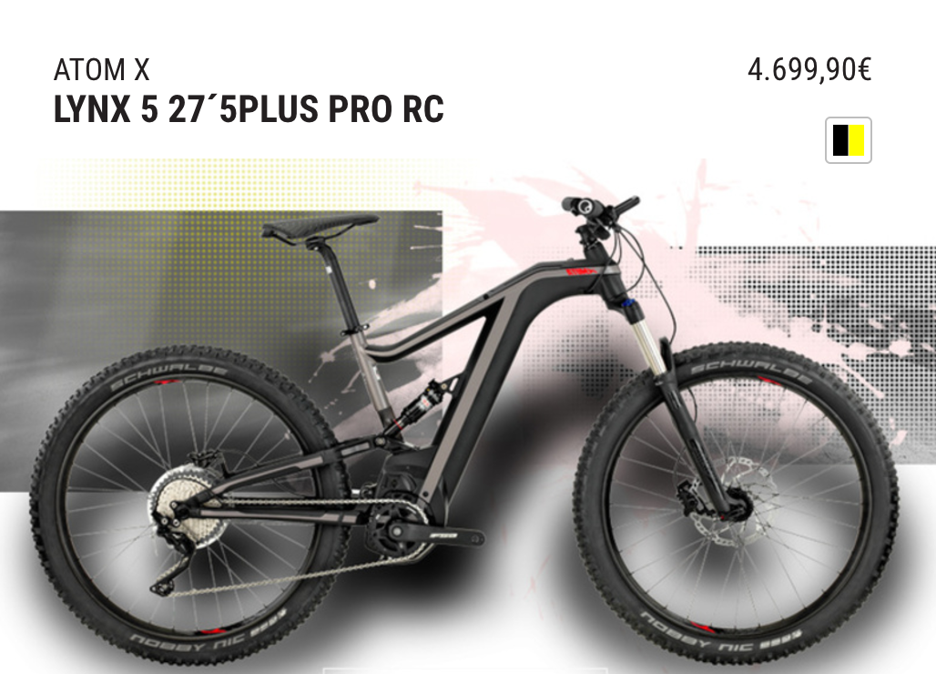 La gamme des fulls commence à 3999€ avec le BH Atom X Lynx 5 en roues de 29″ puis le Atom X Lynx 5 Plus Pro RC en 27,5+ à 4699€ et elle culmine avec le Plus Pro à 5499€.