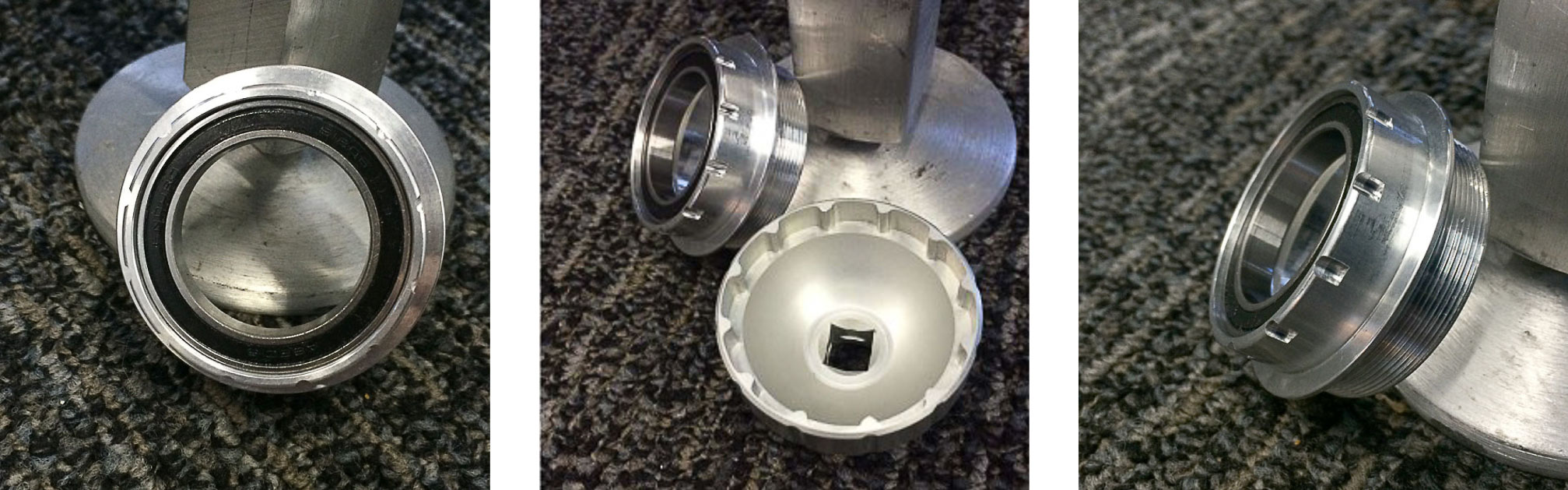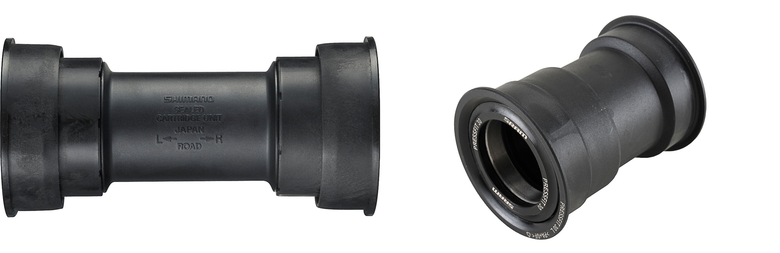 Vint ensuite la tendance à l’intégration, pour deux raisons principales : en plaçant les roulements dans le cadre, on peut élargir la boîte de pédalier du cadre et augmenter la surface de contact avec les différents tubes qui s’y raccordent. Autre avantage, on peut se passer de filetage, particulièrement complexe à réaliser sur des cadres en carbone et qui occasionne un surpoids en raison de la nécessité de placer un insert en aluminium fileté sur ce type d’ossature en fibres. Puis, après tout, les roulements sont montés par pression, sans filetage, dans presque tous les domaines industriels même si, ne nous voilons pas la face, l’industrie du cycle y trouve aussi son compte au niveau de la rentabilité puisqu’une interface PressFit est moins onéreuse à réaliser. Et c’est ainsi que les BB30, PressFit30 et autres PressFitBB92 se sont développés.