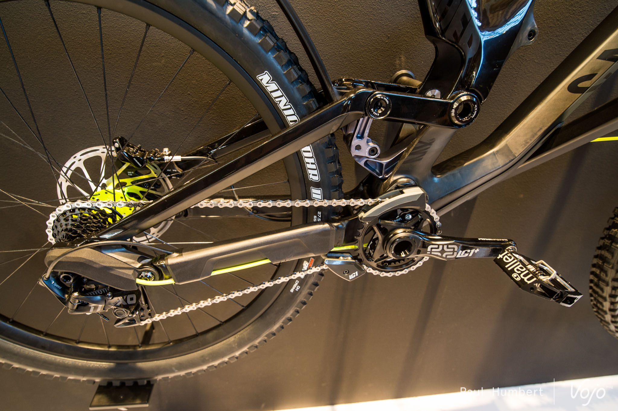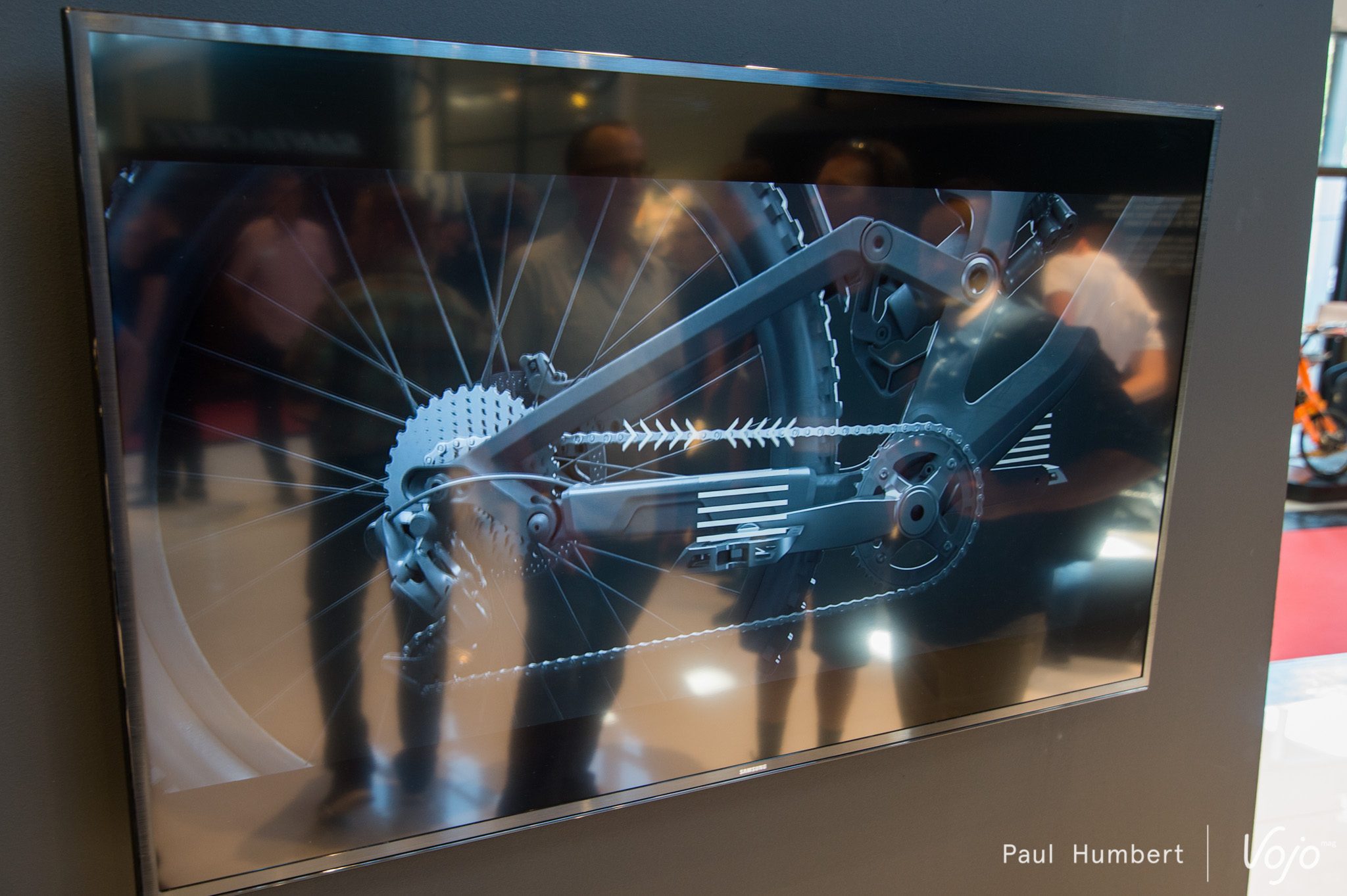 C’est une tradition, chaque année Canyon présente un concept-bike lors de l’Eurobike. Et, cette année, ce sont les ingénieurs en charge de la descente qui s’y sont collés avec une version un peu particulière du Sender. Les performances de pilotes comme Aaron Gwin ou Neko Mulally, qui ont tous deux signé de super résultats après avoir cassé leur chaîne en début de descente, ont réellement influé sur les priorités de la marque en termes de développement. L’idée étant que, libérée de la tension de la chaîne, la suspension peut enfin s’exprimer pleinement.