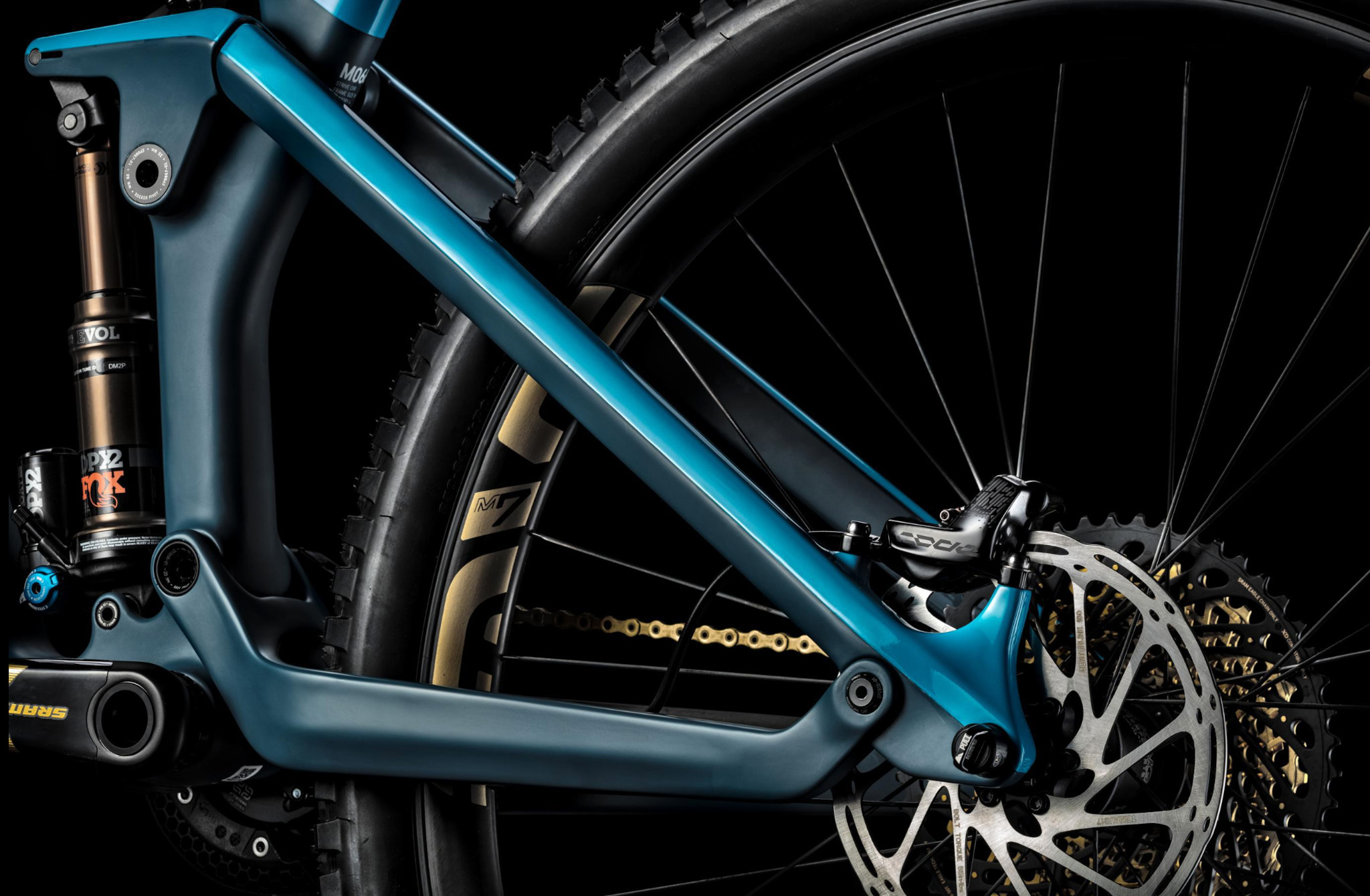 La géométrie répond aux standards actuels. Le vélo est plutôt bas et ouvert, sans toutefois verser dans l’extrême. On retrouve ainsi un reach de 470 mm en taille L, des bases à 435 mm, un tube de selle à 455 mm, et un angle de direction à 66°. Il est intéressant de noter la relative longueur du tube horizontal effectif. Les fourches sont à offset réduit et offrent un débattement de 160 ou 170mm selon la version.