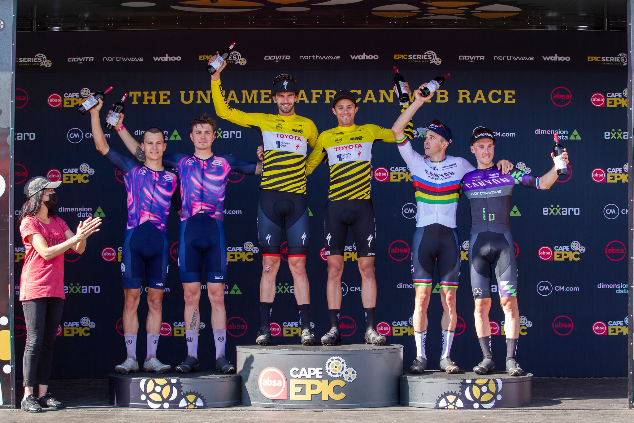 Du côté des hommes, c’est comme en 2021 l’équipe Toyota-NinetyOne-Specialized qui s’est montrée la plus rapide… à la différence que cette année, ce n’est pas Jordan Sarrou qui accompagne Matthew Beers mais Christopher Blevins. Champion du monde « surprise » de XCC en septembre dernier à Val di Sole, l’Américain participe à son premier Cape Epic et ça commence très bien pour lui.