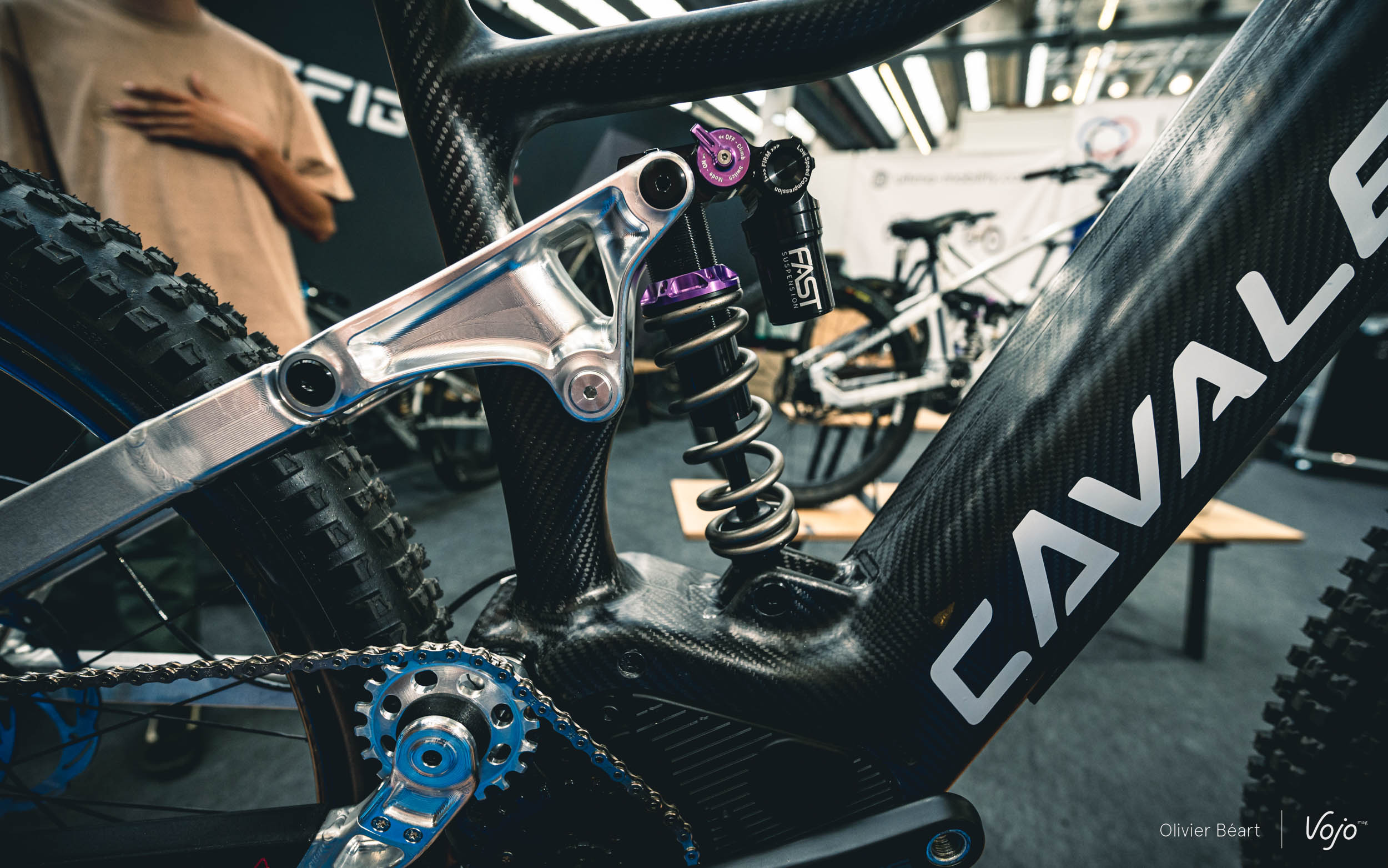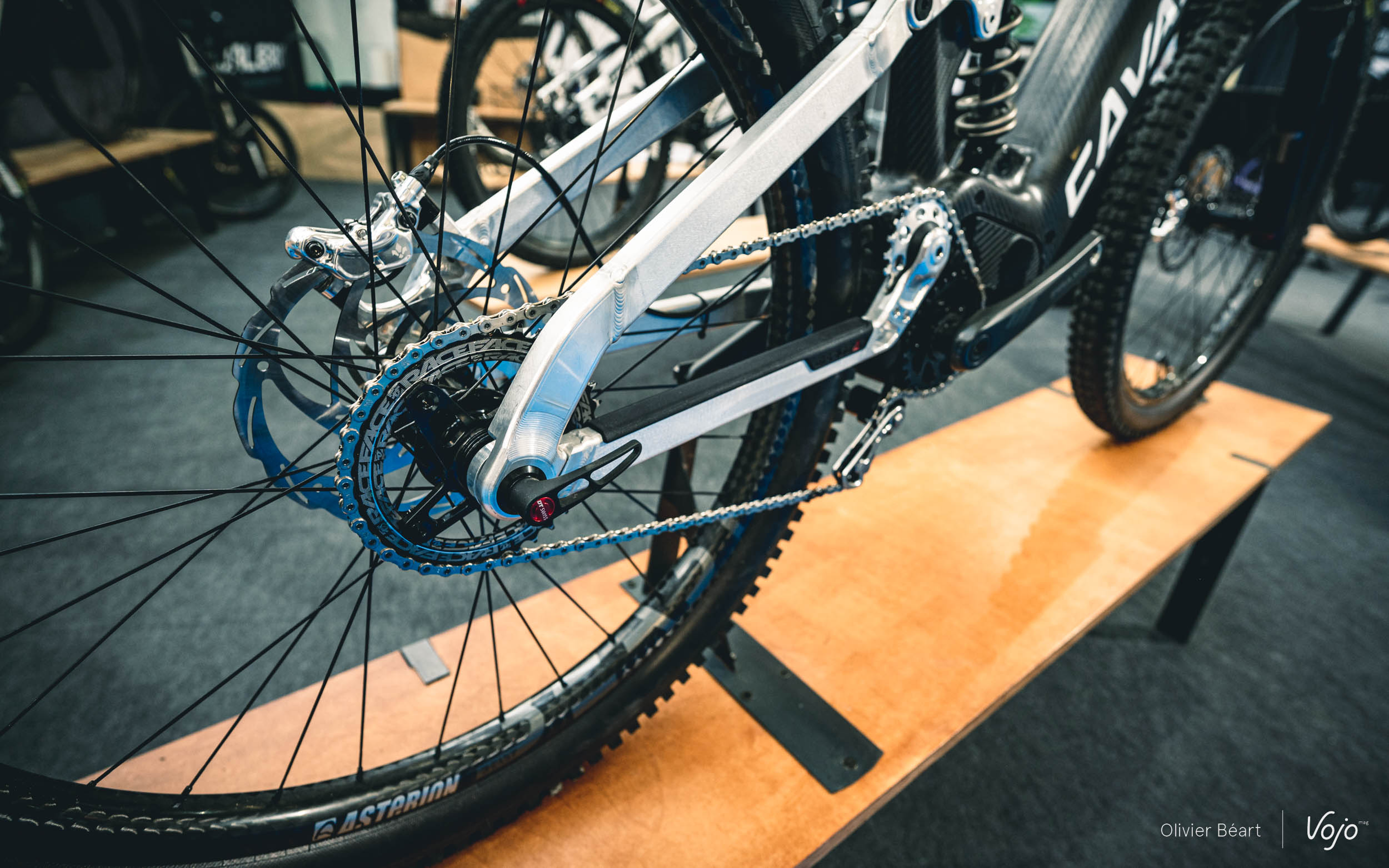 Mais Cavalerie nous avait réservé encore une belle surprise : un e-bike avec un triangle avant en carbone, made in France, et surtout équipé du moteur Valéo ! Outre l’intérêt de voir un nouvel acteur arriver dans l’univers des motorisations e-bike, cette motorisation est intéressante et unique car elle intègre directement une boîte de vitesses dans le bloc moteur. Et devinez de quelle technologie il s’agit ? De l’Effigear bien entendu !