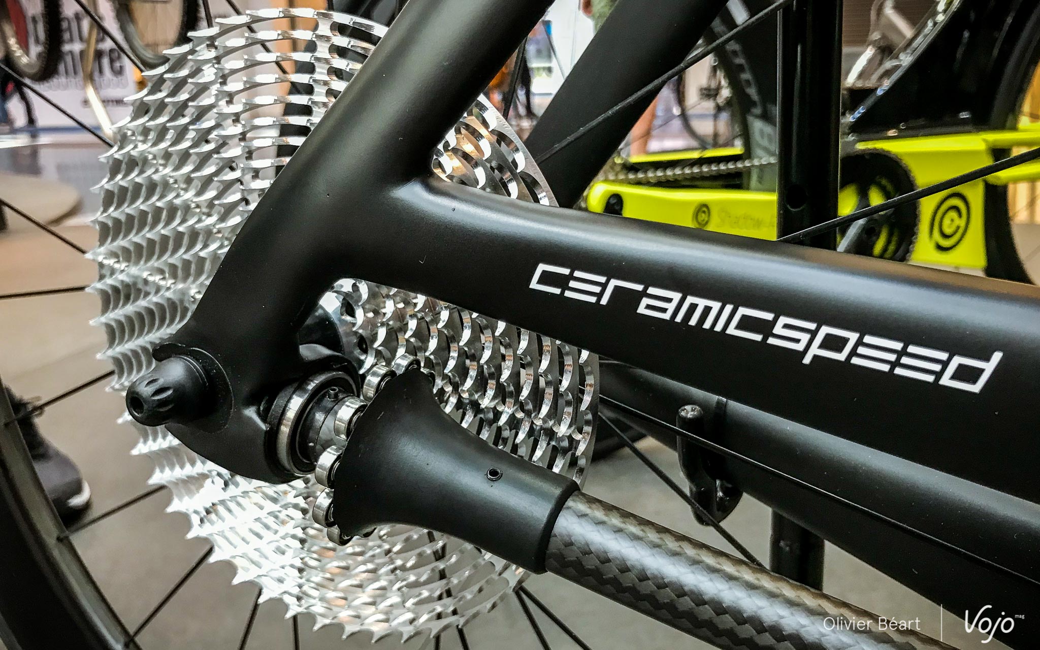 CeramicSpeed a créé l’événement lors de l’Eurobike 2018 avec son concept de transmission DrivEn qui remplace la chaîne et le dérailleur par un arbre en carbone équipé de roulements et par une spectaculaire cassette plate. Vojo s’est attardé sur ce concept révolutionnaire, pas encore tout à fait au point mais extrêmement prometteur :