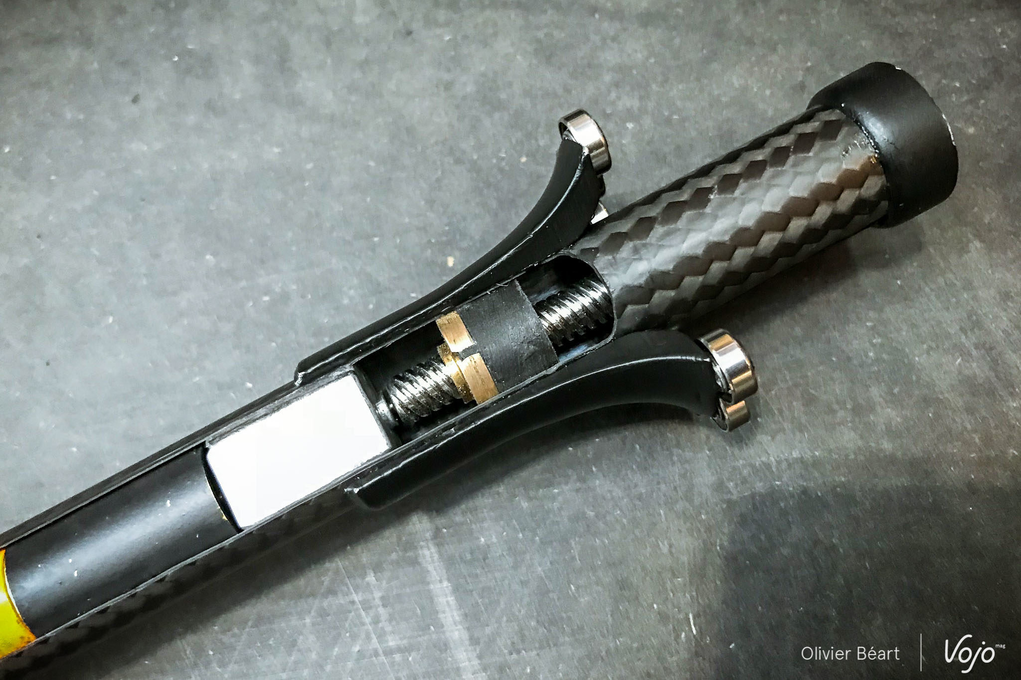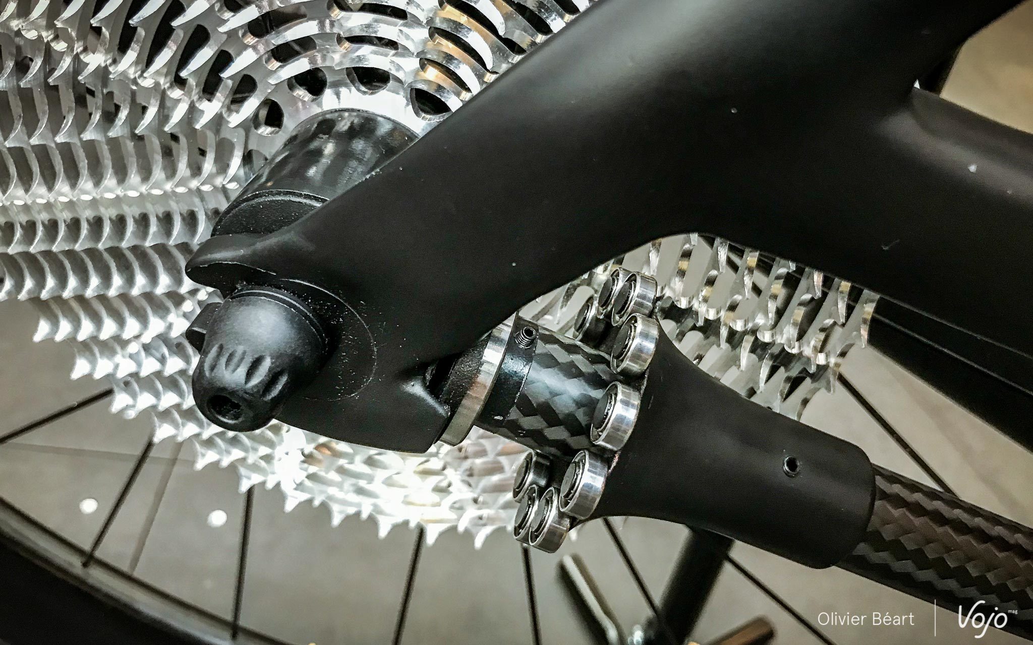 Ah oui, si on parle d’un groupe de route, c’est que, pour l’instant du moins, ce concept a été étudié pour l’asphalte et pas pour le VTT. Quand on évoque le sujet avec son concepteur, il précise : « Sur un hardtail en VTT, c’est tout à fait envisageable. Sur un full par contre cela va être beaucoup plus complexe, sauf si la cinématique est étudiée en conséquence. Mais ce n’est pas impossible ! »