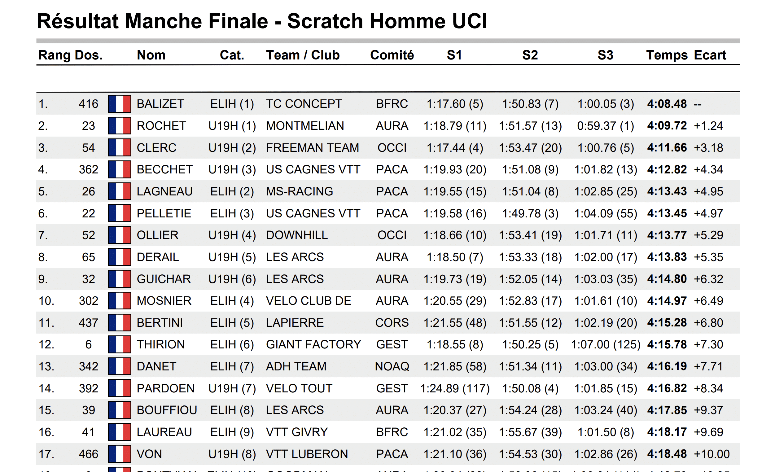 C’est Mathieu Balizet qui remporte le titre en elite en 4:08:48 et avec une troisième place au scratch.