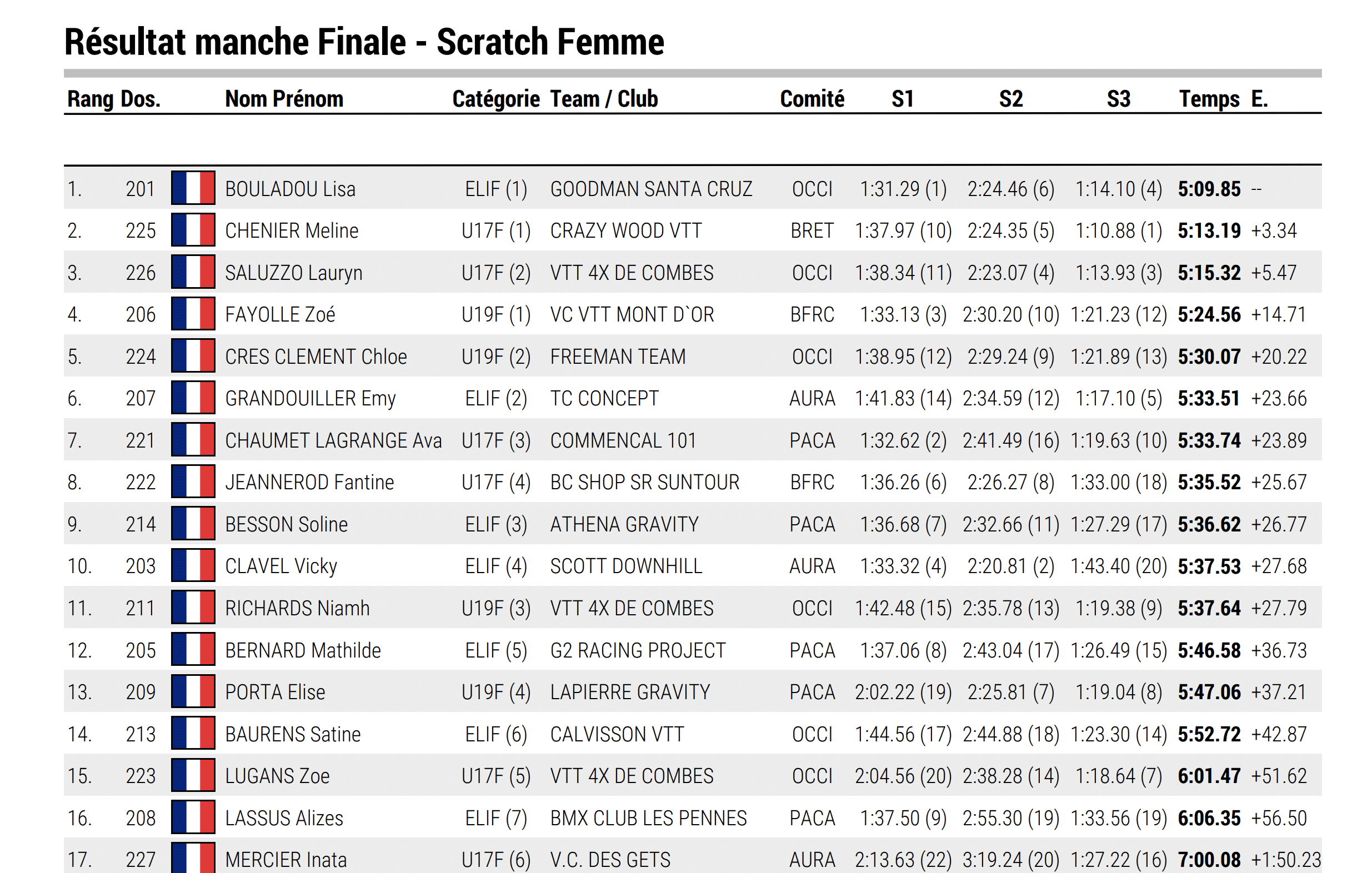 Lisa Bouladou remporte le titre en 5:09, devant Meline Chenier et Lauryn Saluzzo.