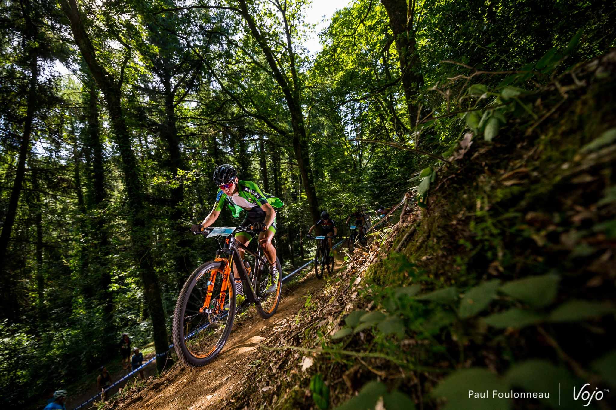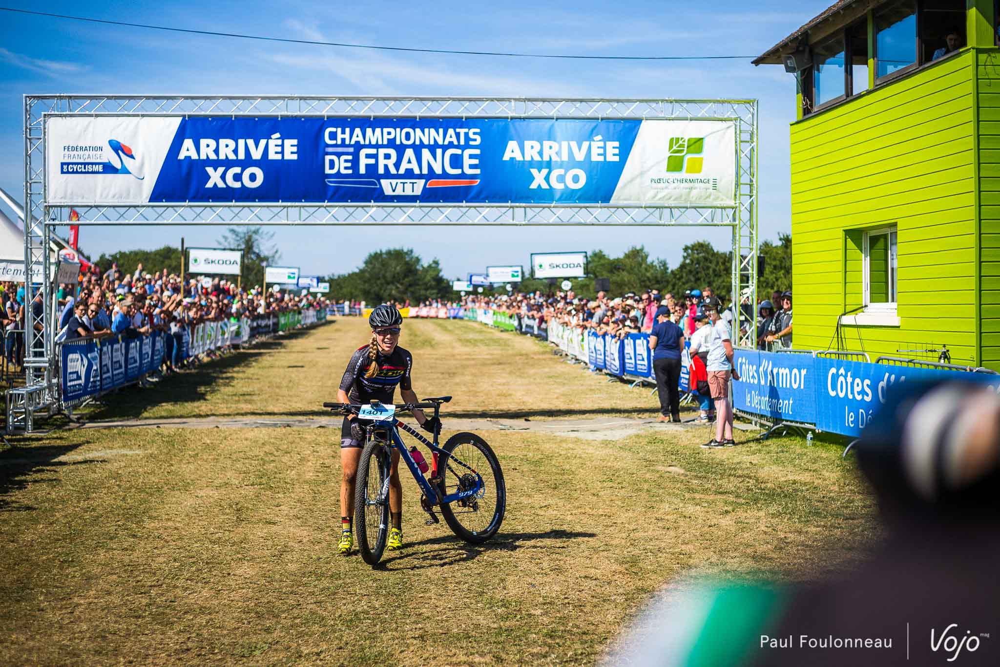Pour compléter le podium de ce championnat de France, on retrouve Maxime Limousin (Horizon 44). « C’est dans le dernier tour, que je prends cette position, car Mathis Azzaro qui occupait cette place a chuté. » Le champion de France cadets 2016 parvient néanmoins à prendre la 3e place sur le podium. « Je suis content de cette médaille de bronze pour ma 1ère année chez les juniors, explique Azzaro, d’autant que je chute dans le 1er tour. Je repars aux environs de la 15e place, mais je suis parvenu à remonter mes adversaires. La 1ère place était inaccessible, mais j’étais bien installé à la 2e, malheureusement dans le dernier tour, je tombe de nouveau et ensuite je connais un problème de dérailleur avec une racine. J’ai dû m’arrêter, remettre ma chaîne. Ce qui m’a forcément coûté du temps… »