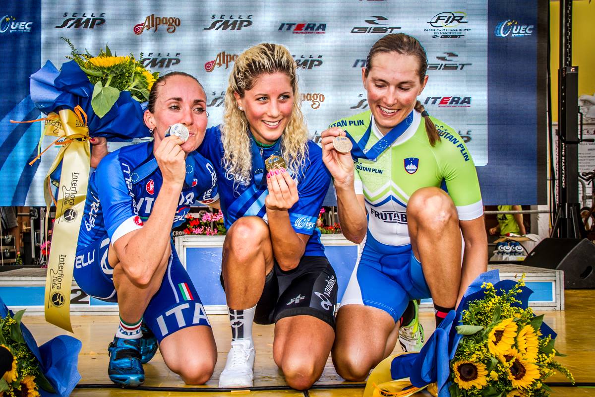 En Italie, la France a dominé la course U23 dames. Après avoir décroché le maillot de championne de France la semaine passée, Perrine Clauzel était remontée à bloc pour partir à la conquête de l’Europe. Afin de se sentir comme à la maison, elle s’est entourée de ses adversaires favorites, et c’est à nouveau avec Margot Moschetti qu’elle a bataillé pour le titre.