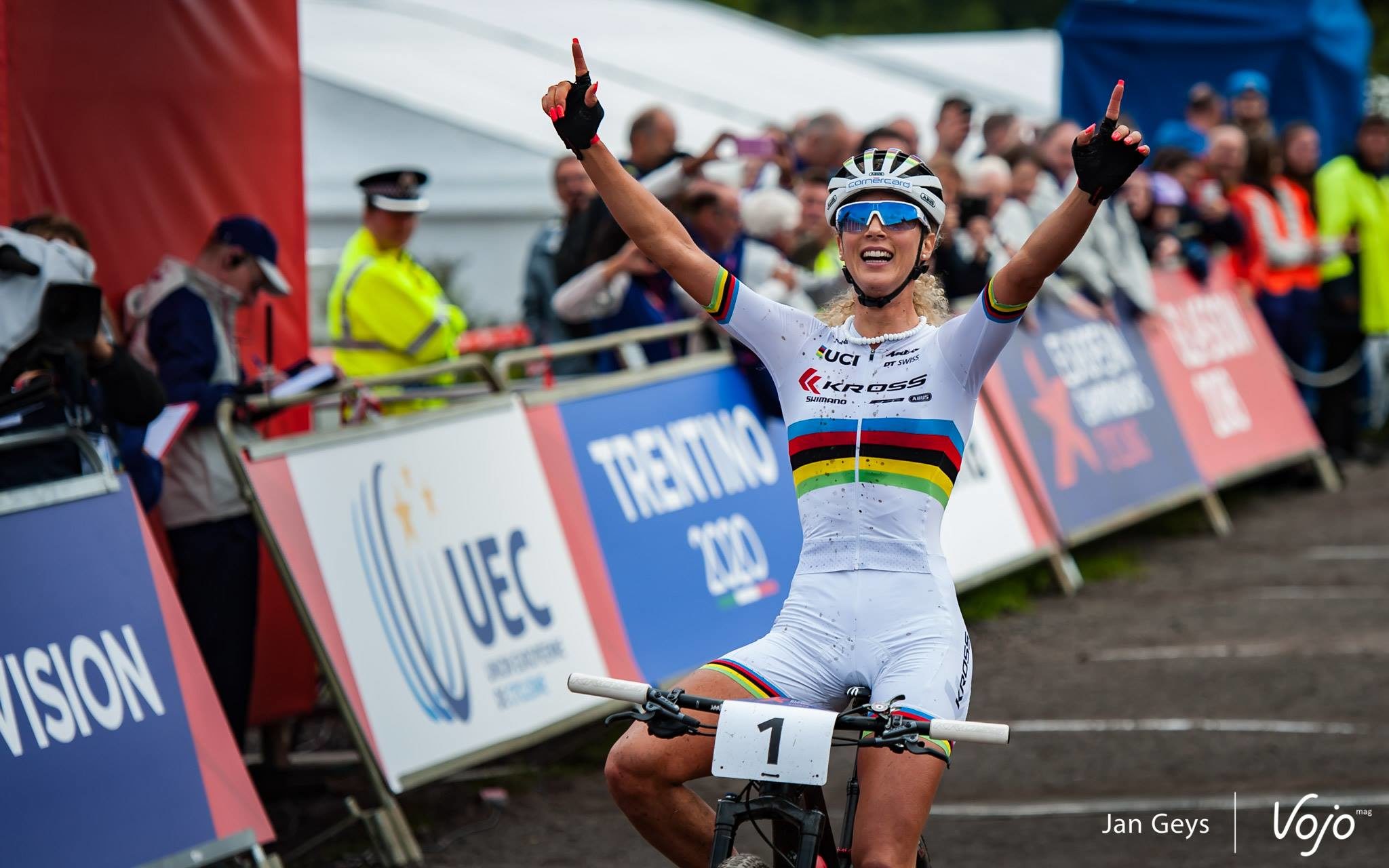 La championne du Monde Jolanda Neff a ajouté un nouveau titre européen à sa collection en faisant preuve d’une domination sans partage lors des championnats européens de VTT qui ont eu lieu ce mardi à Glasgow. Pauline Ferrand-Prevot prend une belle 2e place devant la Belge Githa Michiels qui complète le podium. Vojo y était :