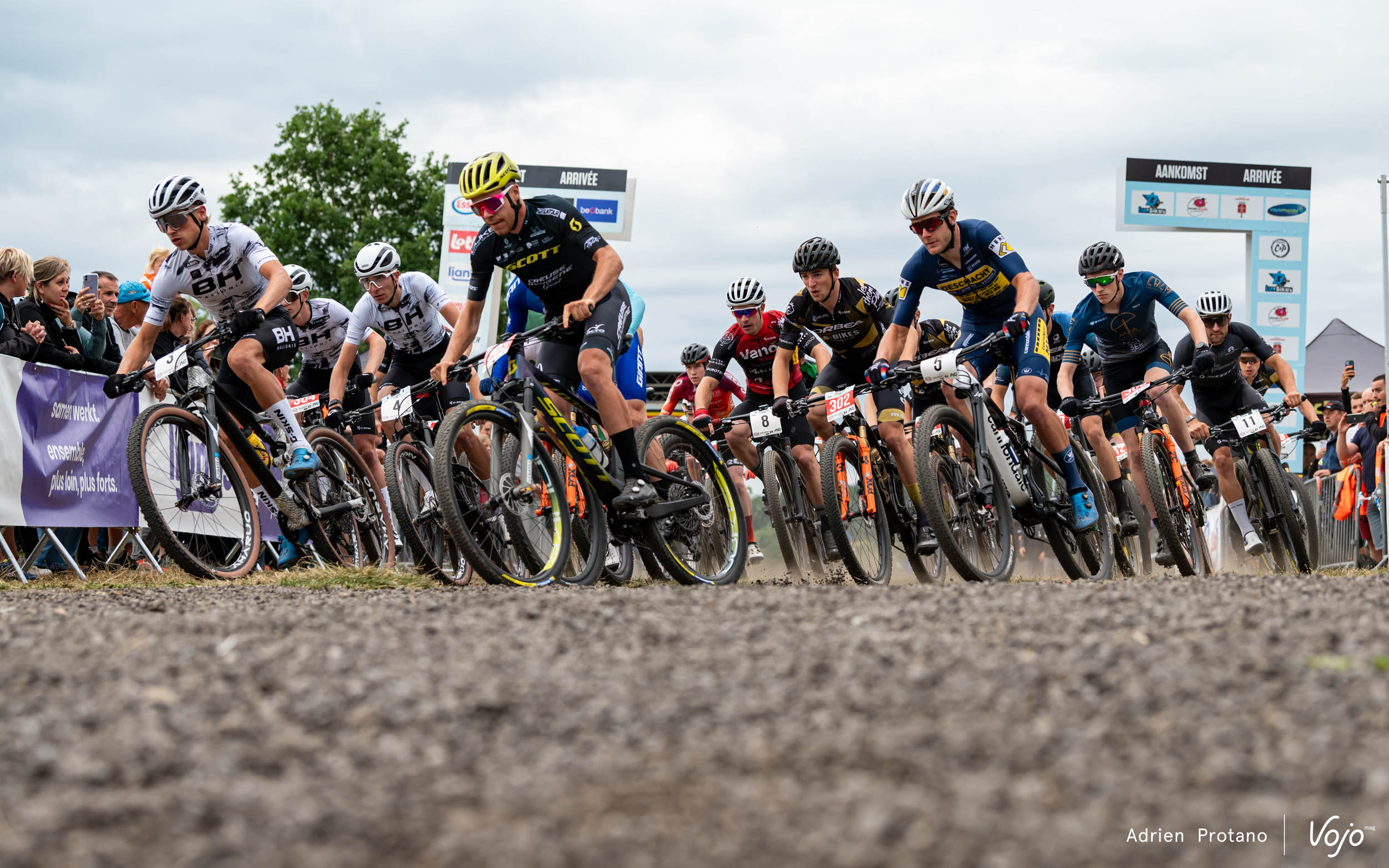 Pourtant, c’est Lukas Malezsewski qui sort du Start-loop en tête, devant Daan Soete et Pierre de Froidmont. Jens Schuermans, champion de Belgique XCO sortant, est par contre plus loin dans le peloton suite à un départ plus difficile.