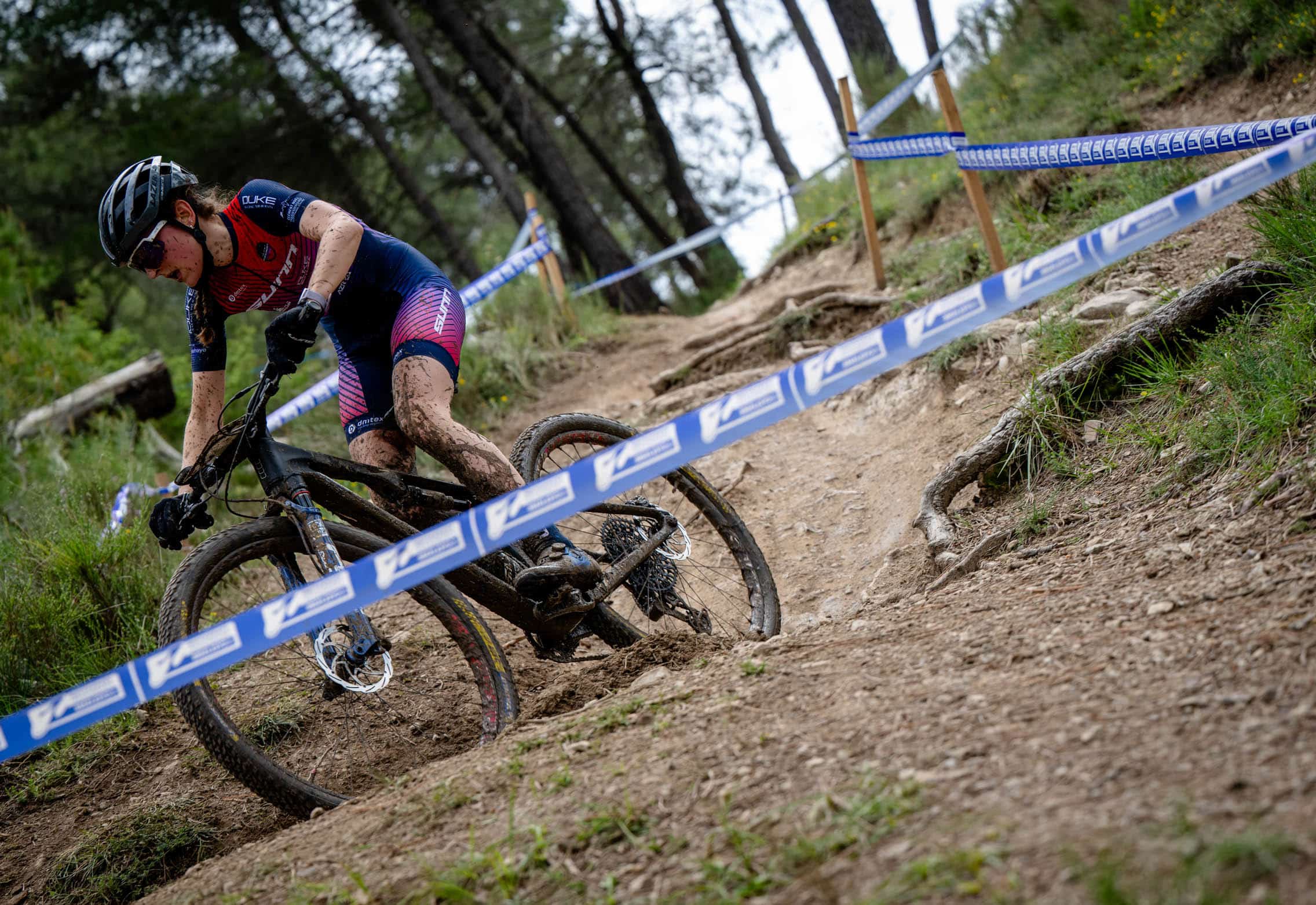 C’est dans le dernier tour de cette épreuve courte que Loana Lecomte va prendre les commandes de la course. On remarquera que la championne de France XCO a préféré le modèle semi-rigide de chez Canyon au tout-suspendu pour ce circuit. Indice de son éventuel choix pour les Jeux olympiques ou simple décision au vu du profil de cette épreuve courte ?