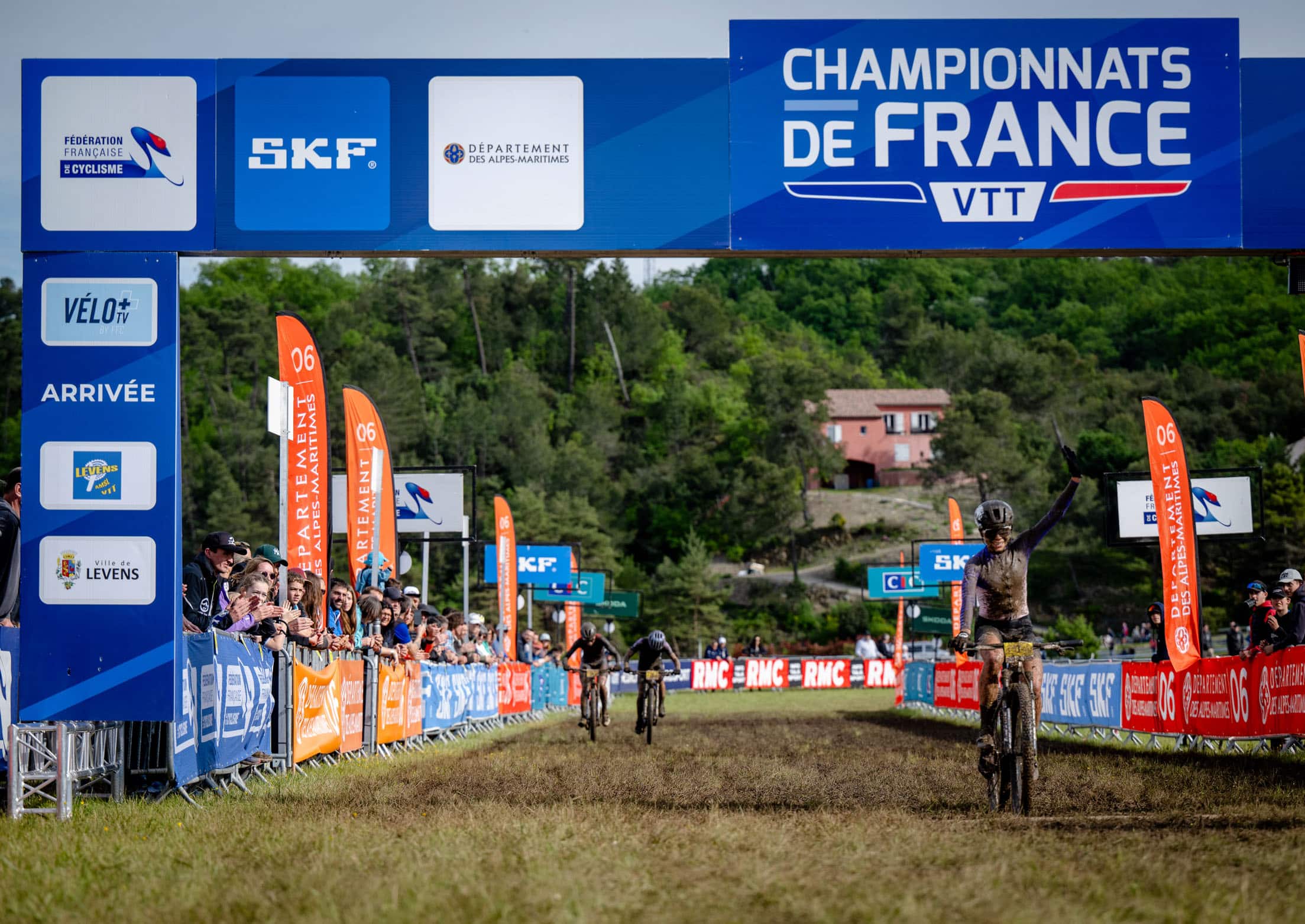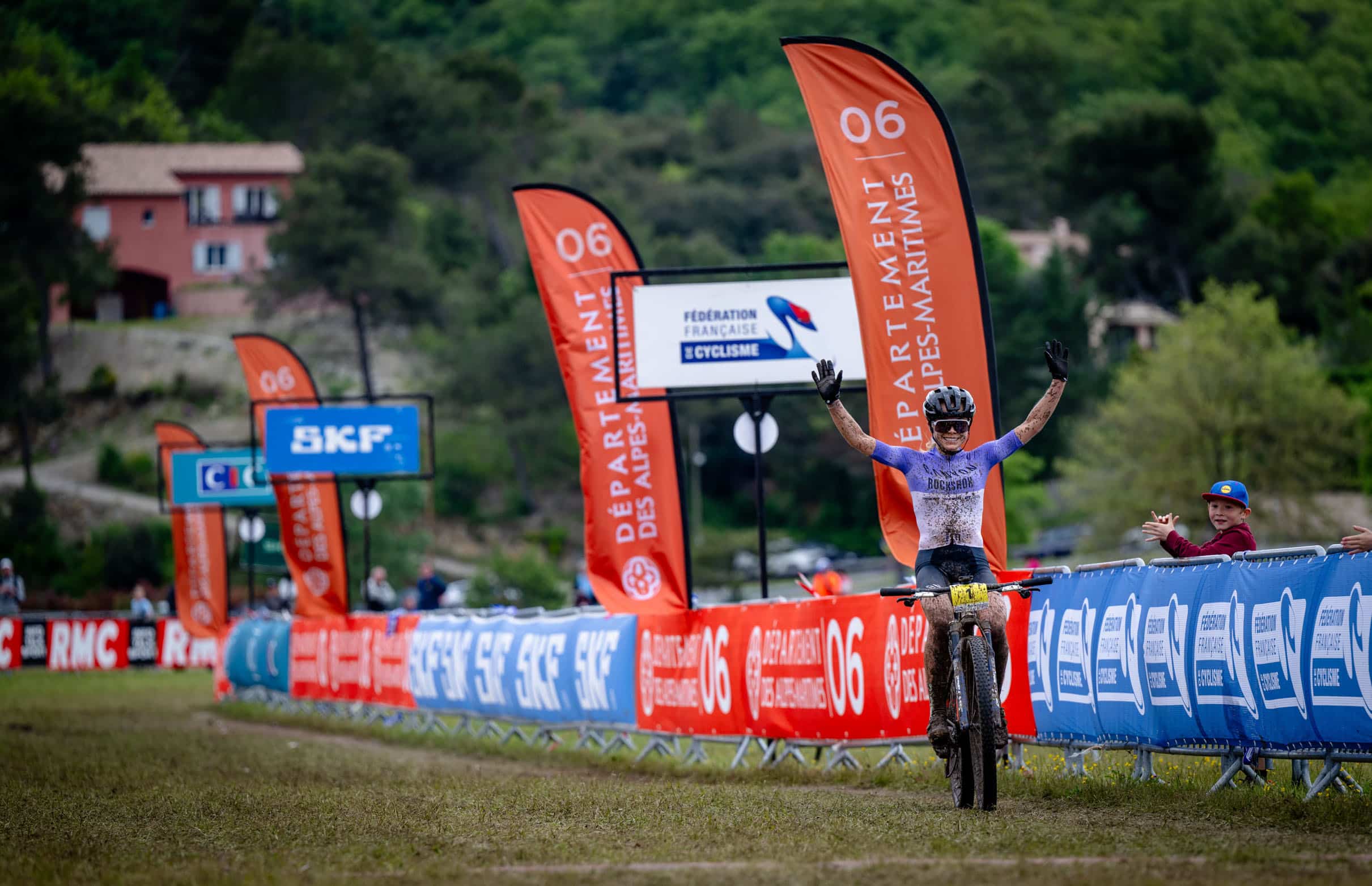 C’est fait, Loana Lecomte se présente sur la ligne d’arrivée avec une avance confortable et remporte un nouveau maillot de championne de France. Voilà une jolie revanche pour la pilote du Canyon CLLCTV qui avait dû abandonner sur la même épreuve un an auparavant !