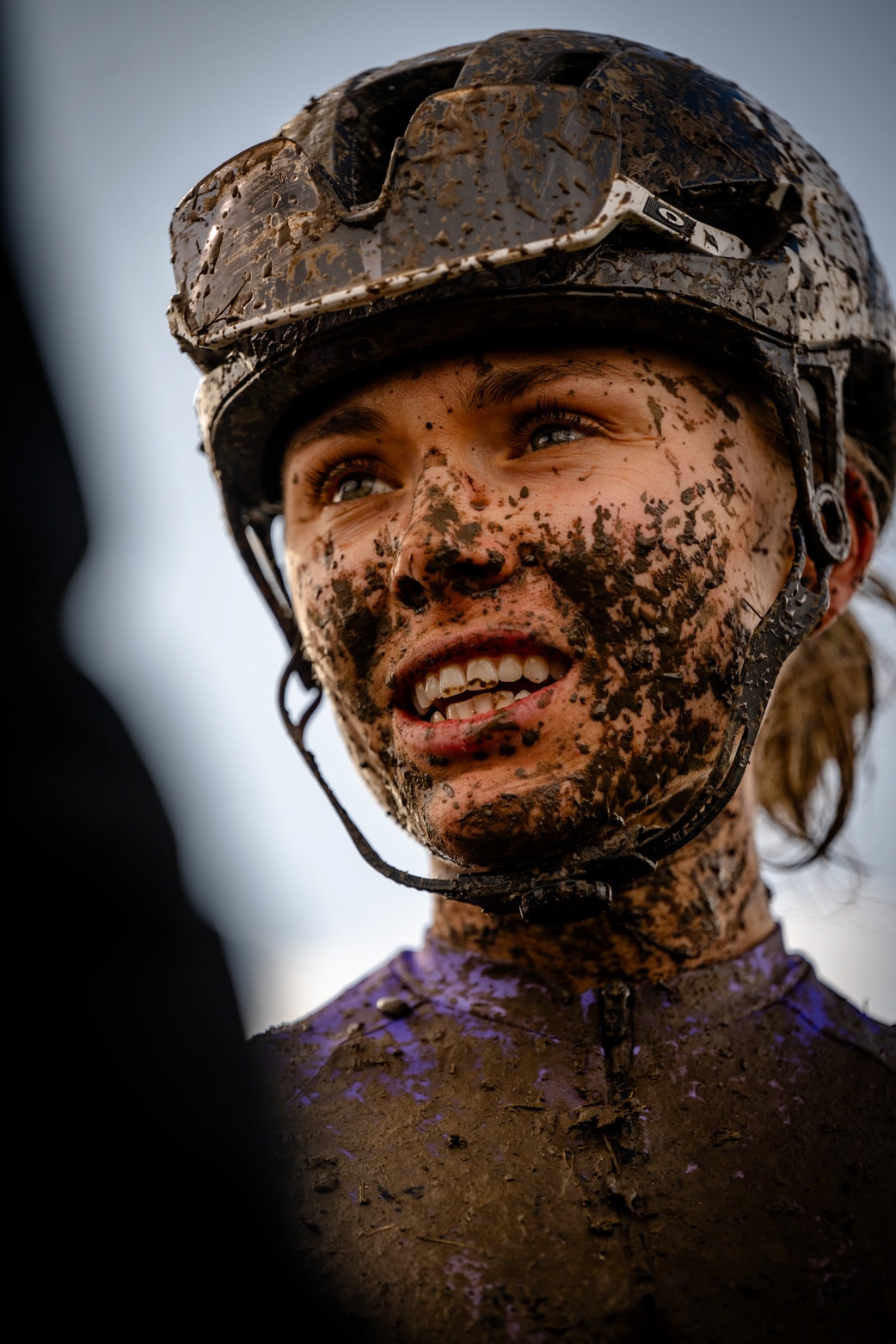 Rapidement, un groupe de trois pilotes se détache en tête de la course : Léna Gérault emporte dans son sillage Loana Lecomte et Flavie Guille. Pluie lors des jours précédents, soleil en ce début de week-end et nombreux passages avec les reconnaissances, toutes les conditions sont réunies pour que le circuit de 1,3 km soit rendu collant et éprouvant à rouler… Pour le côté technique par contre, on repassera. Avec un parcours relativement plat et affichant peu d’obstacles techniques, ces championnats de France XCC ont pris quelques airs de cyclo-cross… encore plus avec toute cette boue !