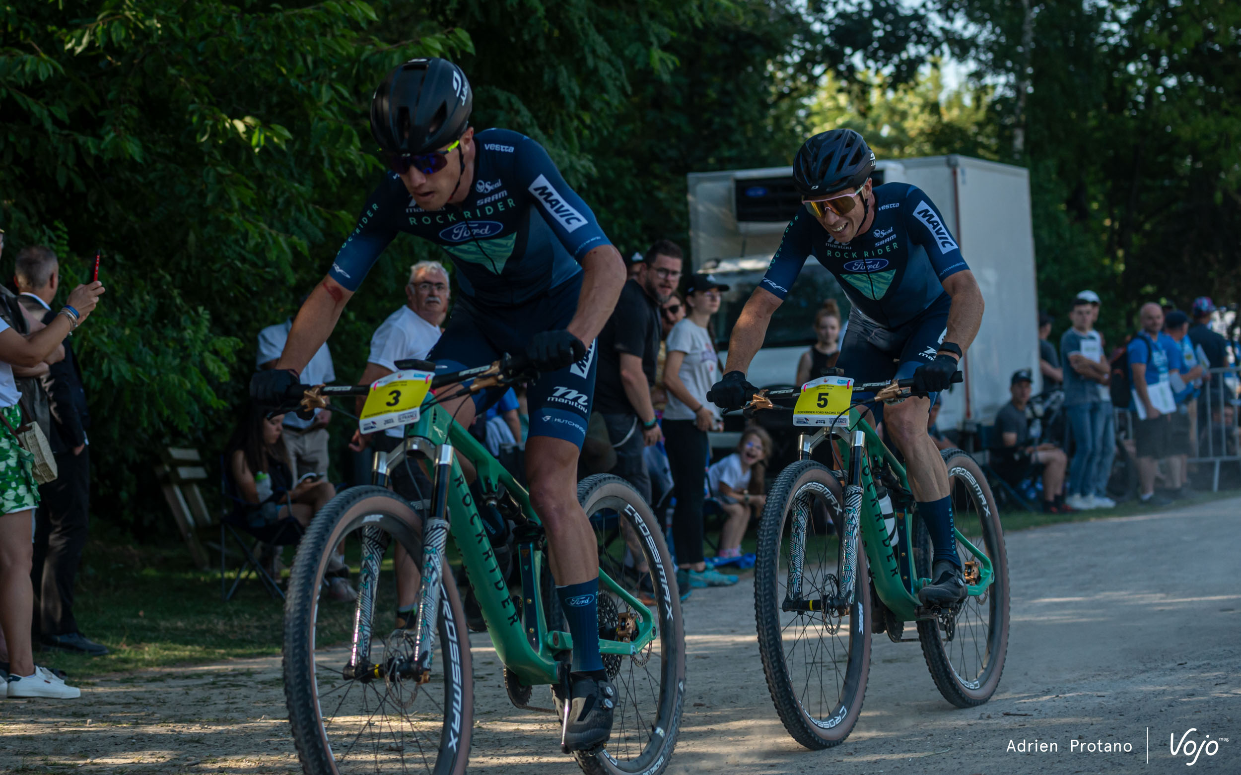 Mais le Rockrider Ford Racing Team semble avoir d’autres plans pour ce Short Track. Après seulement deux tours de course, c’est un trio du team qui occupe trois des 4 premières positions, et seul Maxime Loret a réussi à se hisser dans ce groupe de tête. Le rythme est soutenu et l’échappée creuse l’écart au fur et à mesure des virages de ce circuit explosif.
