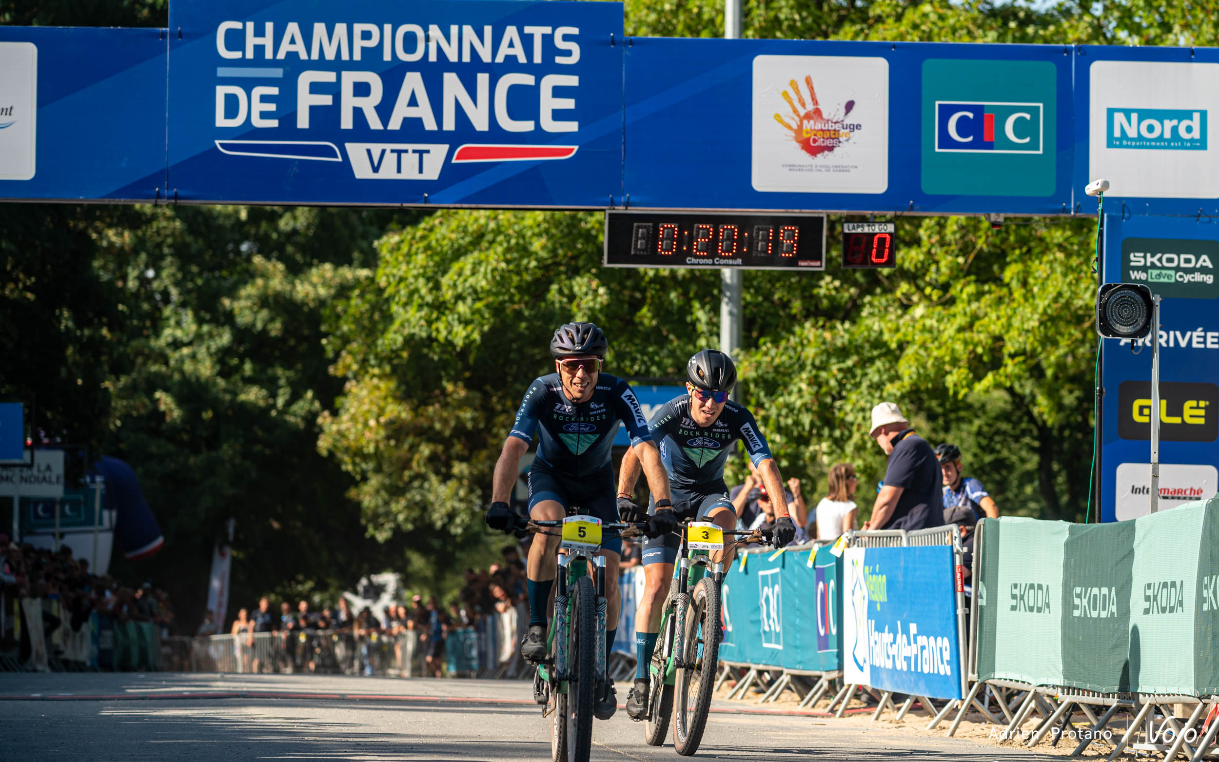 C’est finalement Maxime Marotte qui passe la ligne en première position, avec un cheveu d’avance sur son coéquipier Joshua Dubau. Un maillot tricolore de plus pour le pilote de 36 ans, qui s’en est déjà offert 5 depuis le début de sa carrière. Maxime, à bout de souffle, exprime sa joie avec émotion sur la ligne d’arrivée : « Super heureux de ma course. J’ai réussi à rentrer sur le groupe de tête et finalement à passer devant Joshua. C’est un titre qui fait du bien et surtout plaisir. Je remercie toute l’équipe qu’il y a derrière moi. »