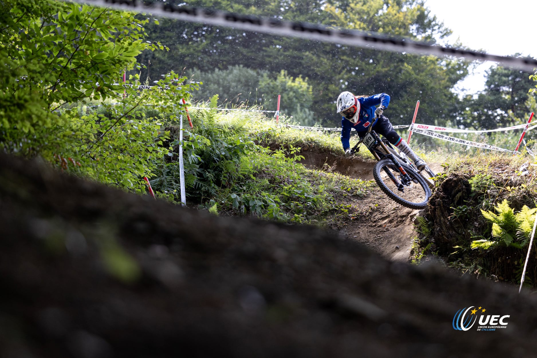 Pas de catégorie Espoirs en descente, on passe directement des Elites aux Juniors (ou l’inverse). Le podium est inédit chez les femmes avec certaines nations pas (encore ?) très représentées au plus haut niveau : la Bulgare Izabela Yankova a remporté le titre en devançant l’Autrichienne Sophie Gutöhrle et la Norvégienne Kine Haugom. Léona Pierrini termine à la 5e place, juste devant Vicky Clavel.