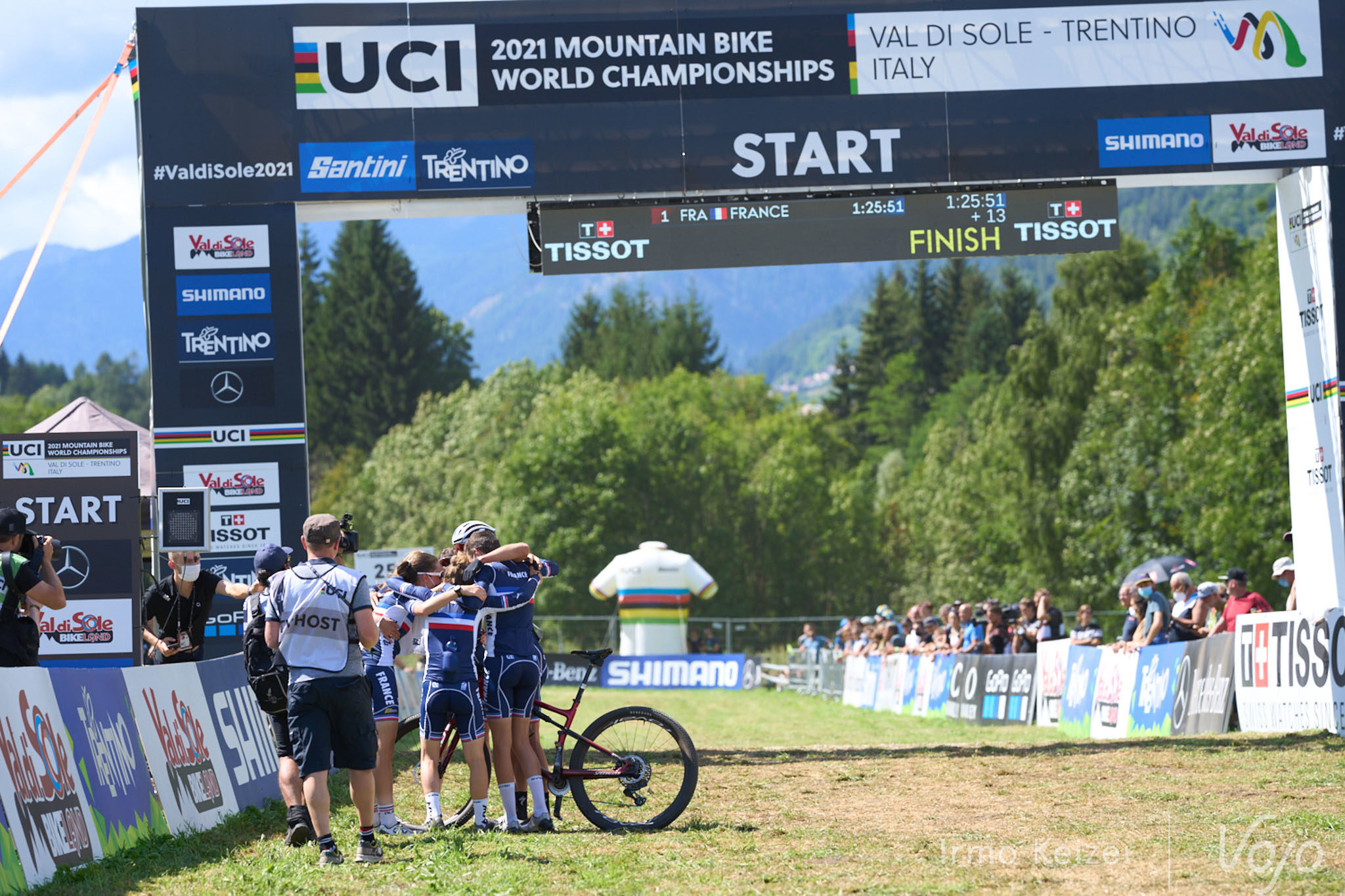 Après la pluie et les bourbiers autrichiens de Leogang l’année dernière, c’est le soleil qui accueille les pilotes pour les championnats du monde en Italie cette année, dans la bien nommée Val di Sole ! Les compétitions (hors épreuves qualificatives) commençaient ce mercredi midi avec le relais des Nations en XC et la France en a profité pour lancer sa semaine de la meilleure façon possible !