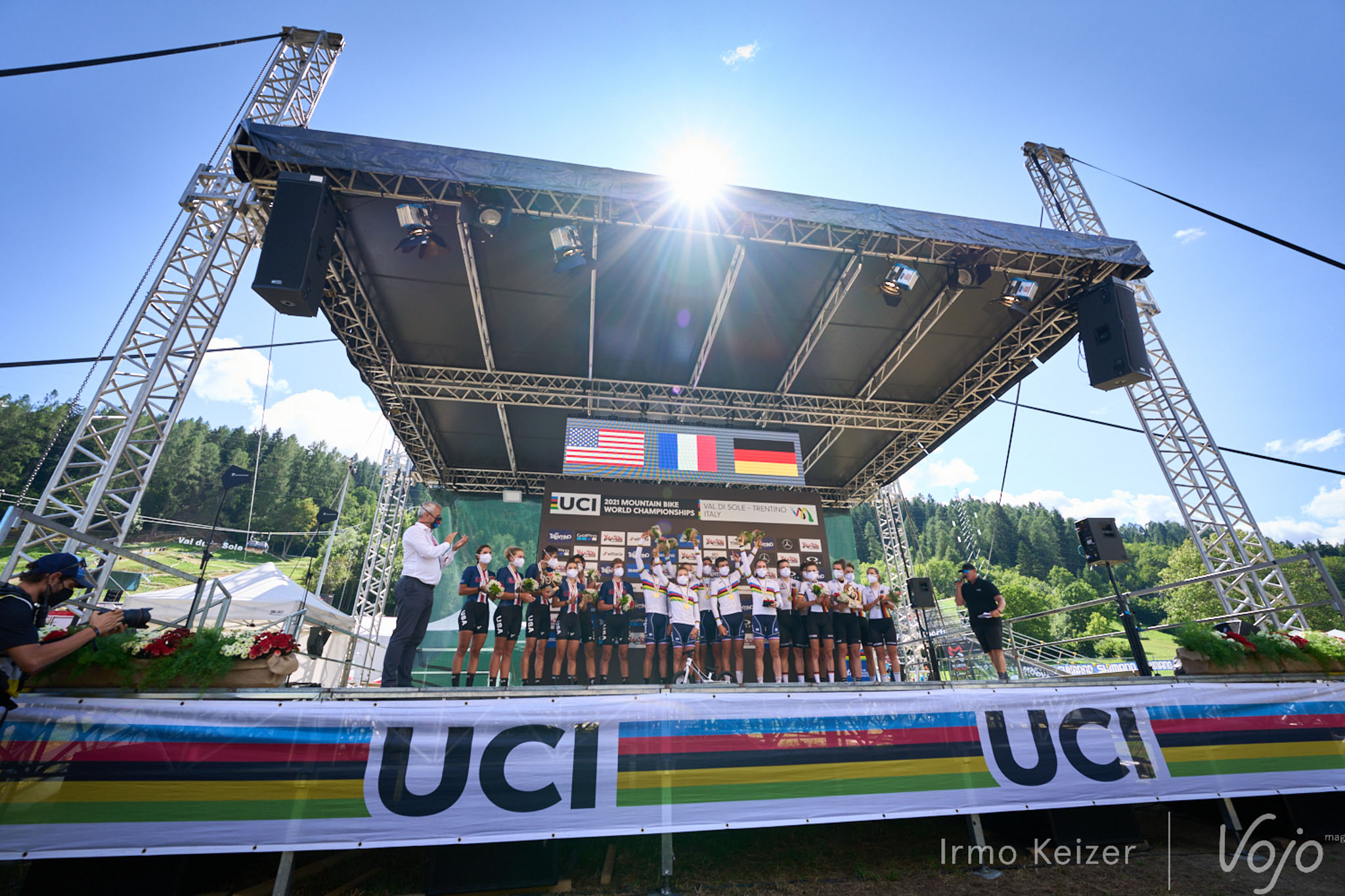 A la deuxième place, on retrouve l’équipe des Etats-Unis d’Amérique. Après avoir mené le début de course, elle a reculé jusqu’en 7e position avant de remonter sur le podium grâce à ses deux derniers relayeurs, Kate Courtney et Riley Amos (U23).