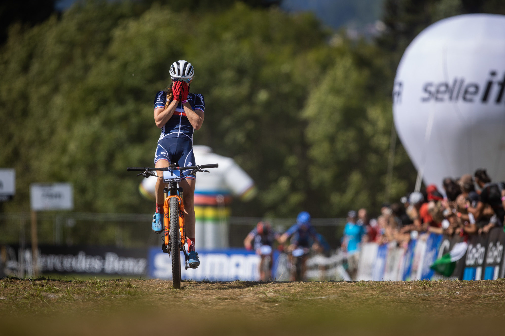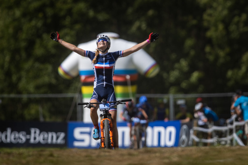 On attendait le sprint entre les deux Françaises mais c’est Line Burquier qui se présentait seule en tête sur la ligne d’arrivée pour son premier titre mondial en individuel ! En revanche, le sprint avait bien lieu pour la deuxième place quelques secondes plus tard et c’est Olivia Onesti qui prenait le meilleur sur Sara Cortinovis, offrant le doublé à l’équipe de France.