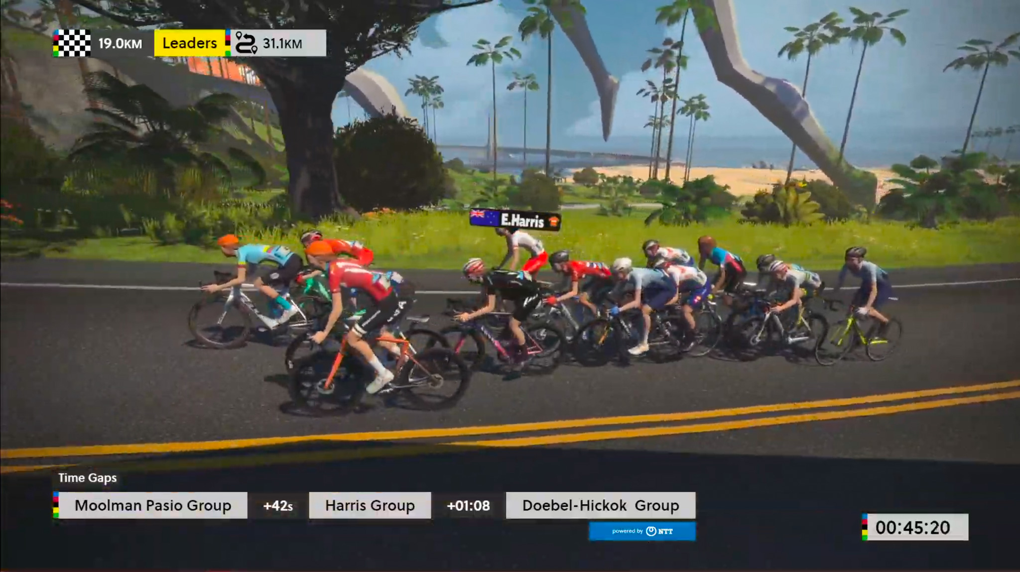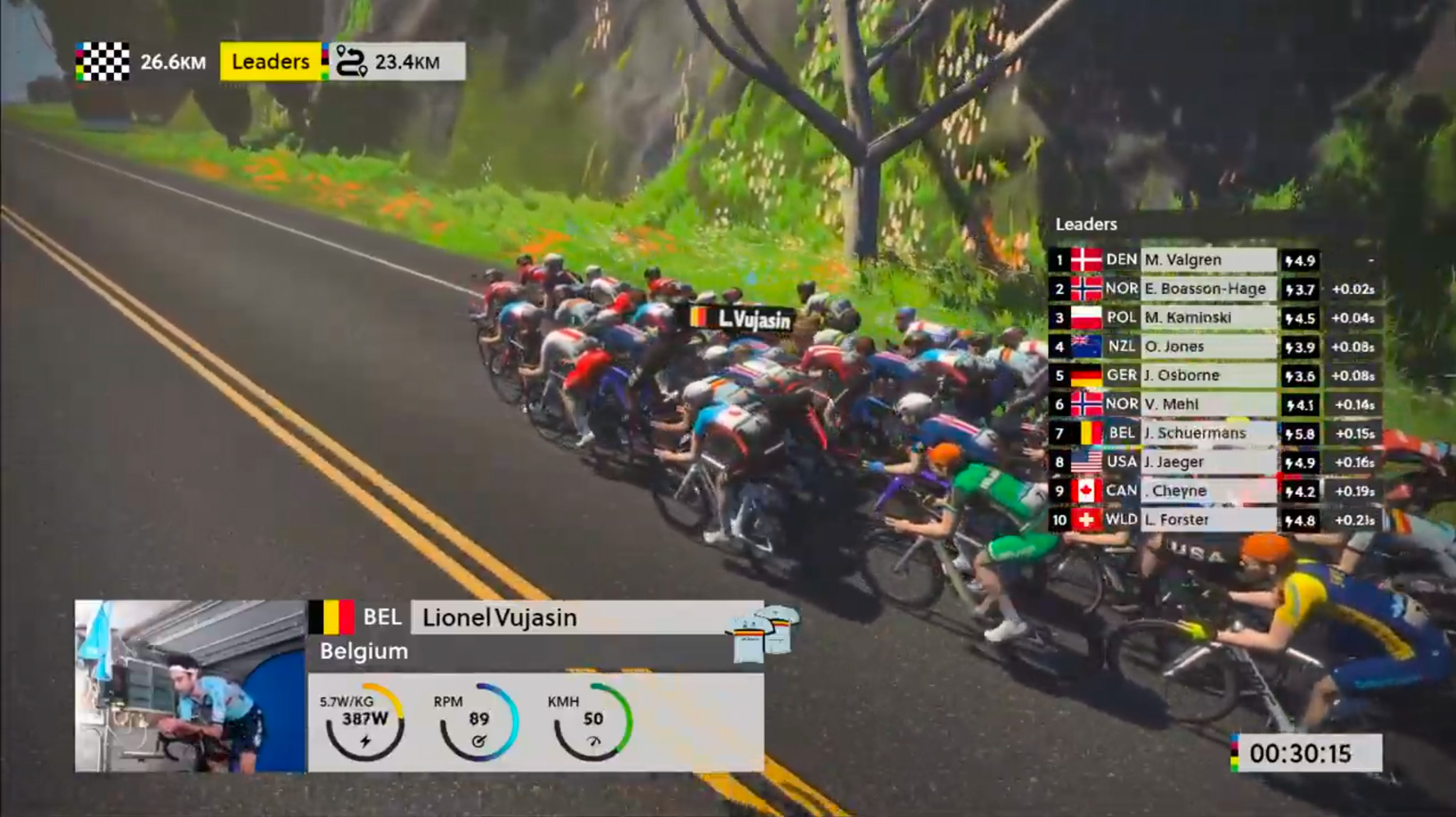 Avec un phénomène d’aspiration bien plus présent sur Zwift qu’en cyclisme sur route, la plupart des observateurs s’attendaient à des courses d’attente et cela n’a pas manqué. Chez les hommes comme chez les femmes, d’un point de vue extérieur tout s’est déroulé dans le dernier kilomètre et demi. Dommage pour le spectacle, dommage pour l’intérêt de ces épreuves et encore plus dommage quand on sait qu’en temps normal, une course de Zwift Premier League (la plus haute division de courses sur la plateforme) se déroule selon un format bien différent, plus proche de la course aux points sur piste et avec un classement par équipe.
