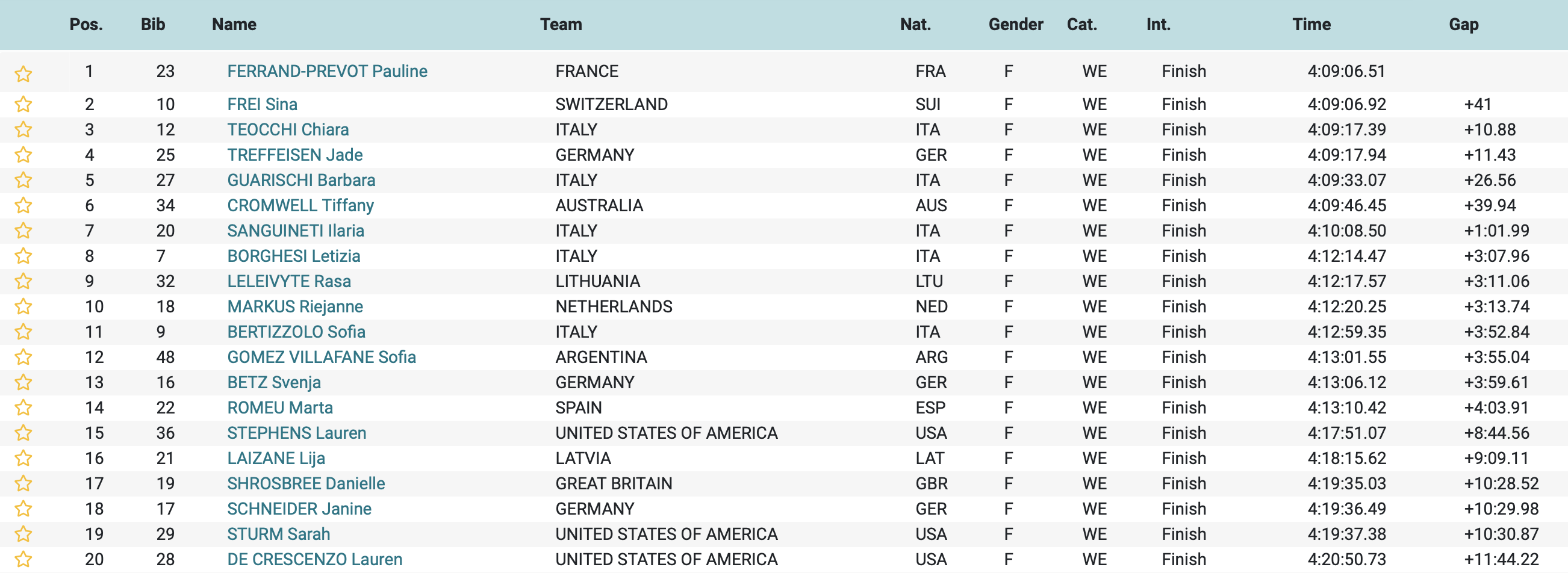 Sina Frei repart donc avec la médaille d’argent et Chiara Teocchi, tout juste revenue d’une période de surentrainement, complète ce podium.