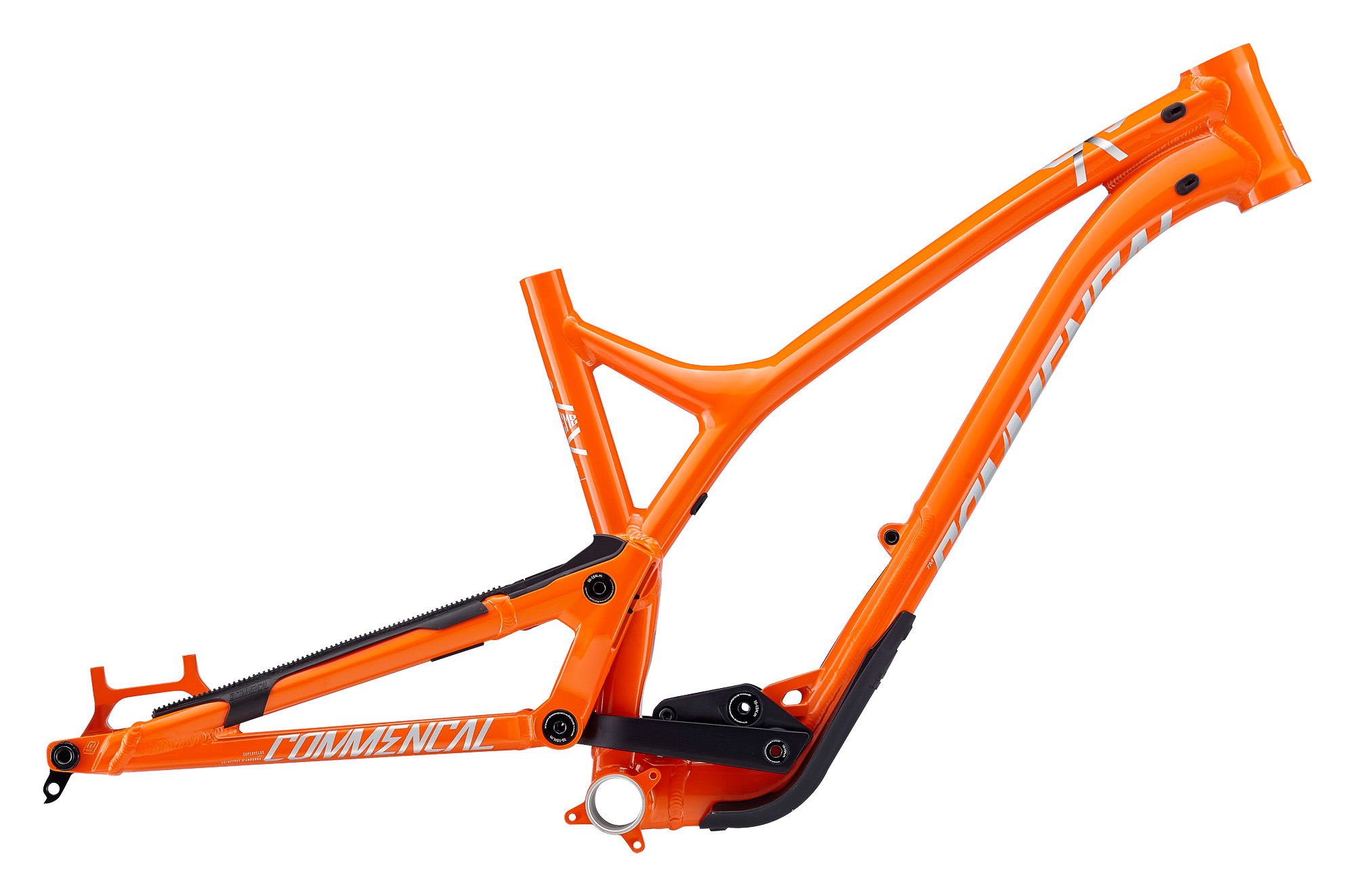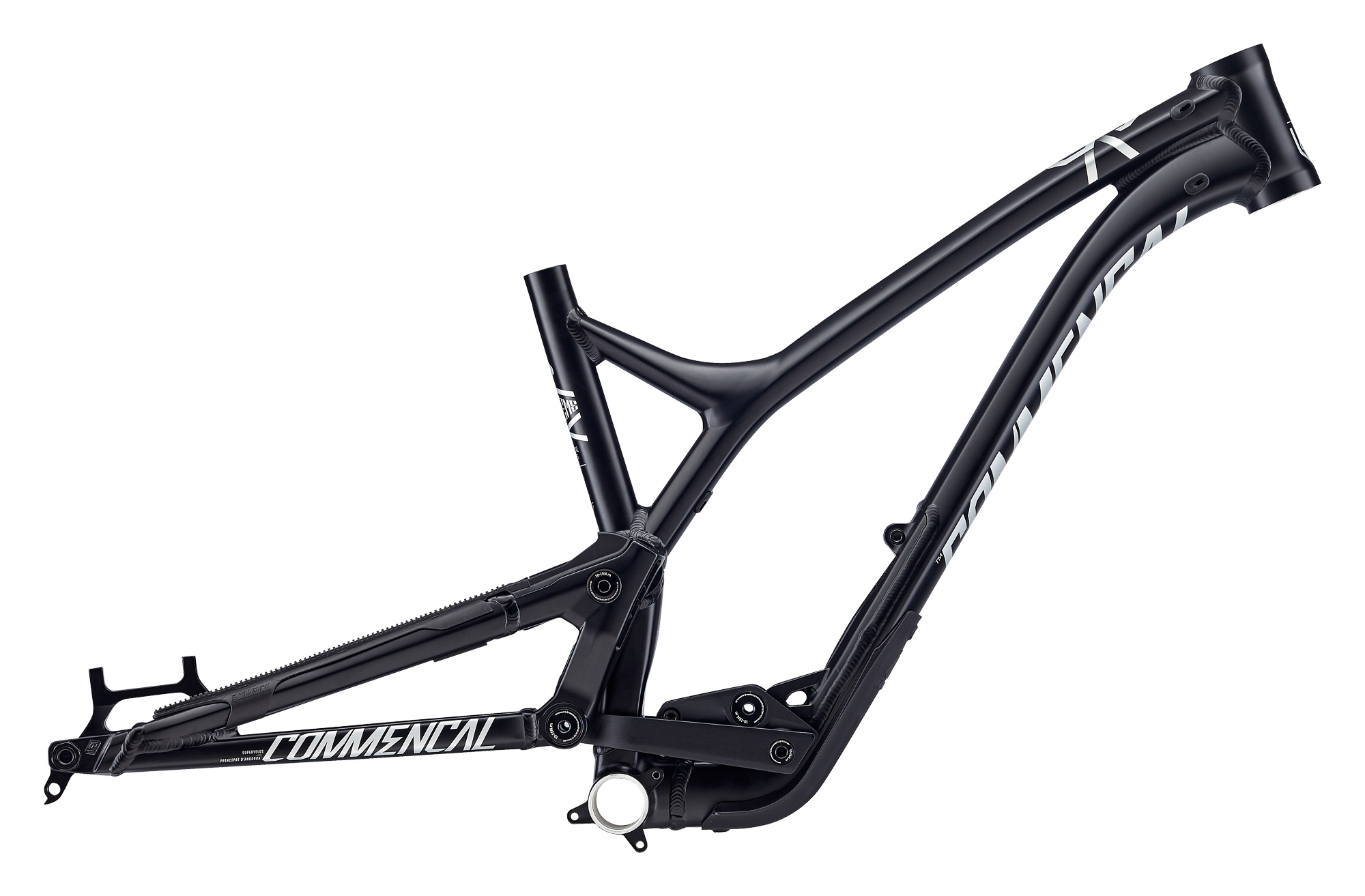 Cela se voit et Commencal ne le cache pas, le cadre est celui du Supreme V4.2 très légèrement modifié et équipé d’un amortisseur RockShox Deluxe à air pour arriver à un débattement de 180mm (identique à l’avant) avec la fameuse cinématique Contact System et son point de pivot placé très haut.