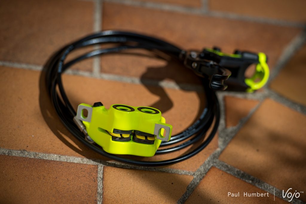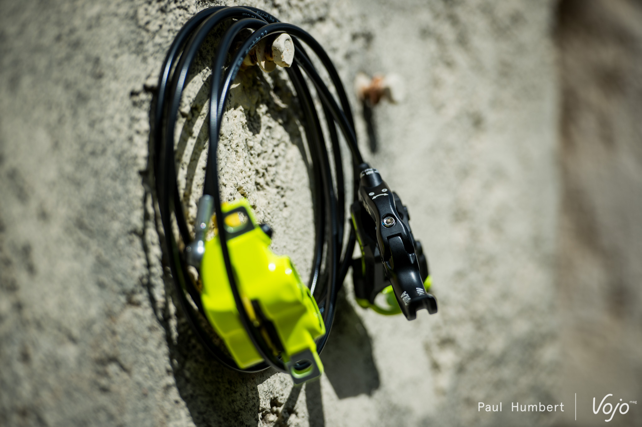 Le réglage du reach (la portée) est disponible et s’ajuste avec une clé Allen, et l’autre réglage, le plus important pour Danny Macaskill, est celui du ratio de puissance. L’Ecossais cherche à pouvoir systématiquement doser et évaluer la puissance de son freinage. C’est grâce au rapport de transmission du levier que la chose est rendue possible et ce rapport se règle à l’aide d’une clé Torx T25.