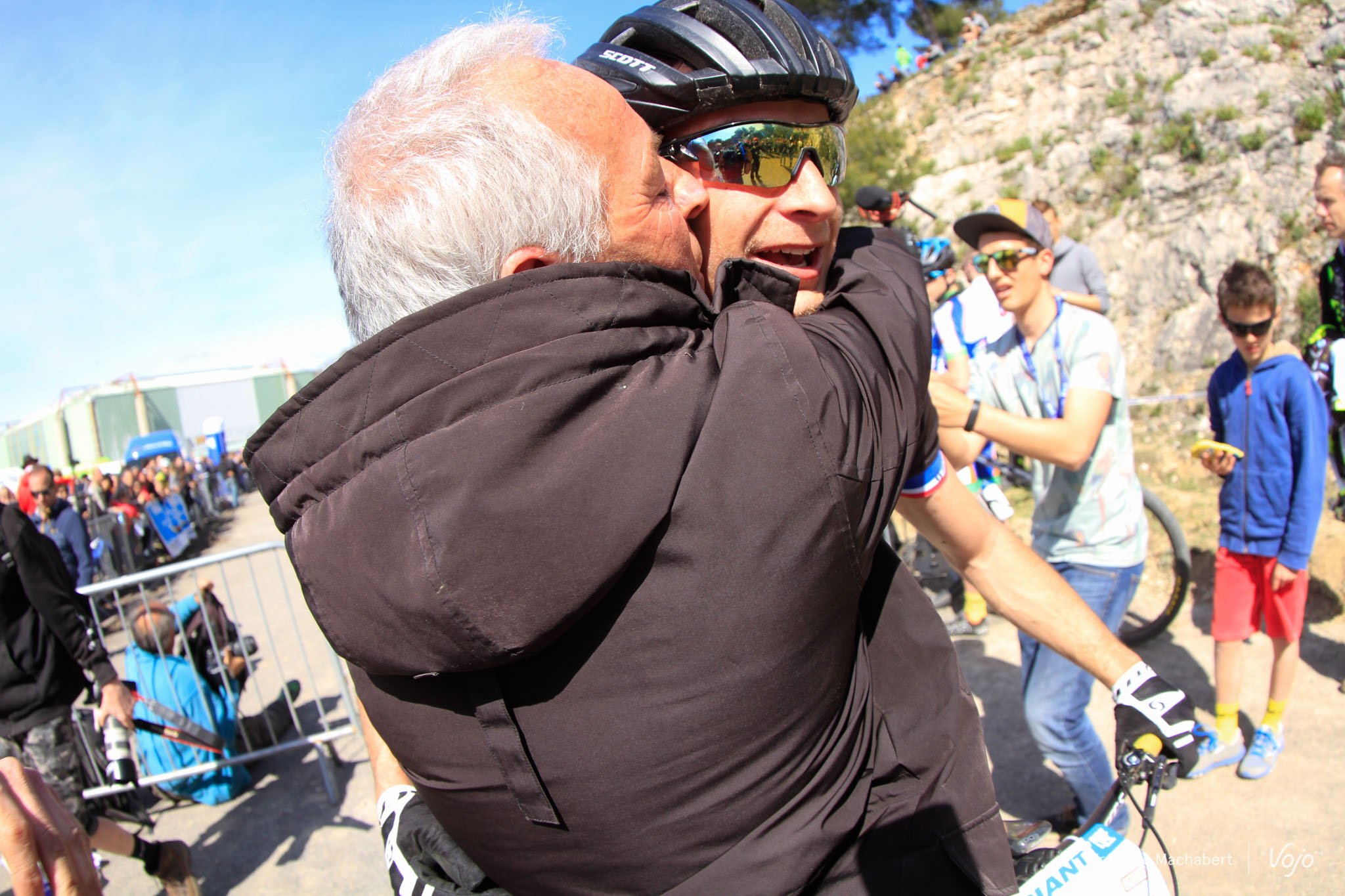 L’équipe Scott Creuse Oxygène est avant tout une famille. Alain Menut, président et fondateur du club du Limousin, tombe dans les bras de Carod. « En 22 ans d’existence, c’est notre première victoire chez les élites », souffle-t-il, ému.