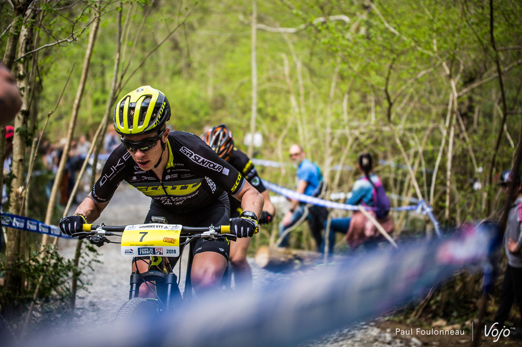 À 40 ans, Sabrina Enaux est la plus âgée au départ de la course. La pilote Specialized termine en tête devant un autre nom connu : Julie Bresset. La pilote Scott avait, à l’instar de la gagnante, été pénalisée par une crevaison lors de la première manche de la coupe de France à Marseille où elle terminait troisième. À Lourdes, la bataille aura duré jusque dans le cinquième et dernier tour et aura tourné à l’avantage de Sabrina Enaux.
