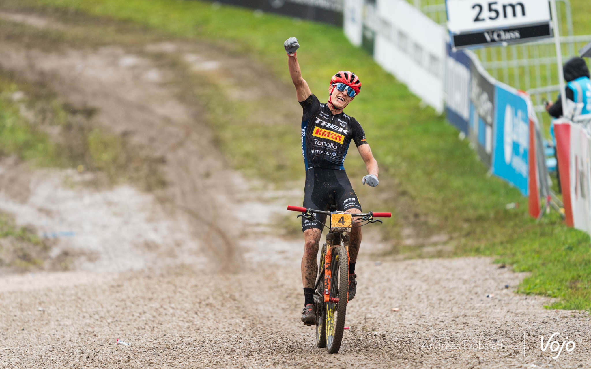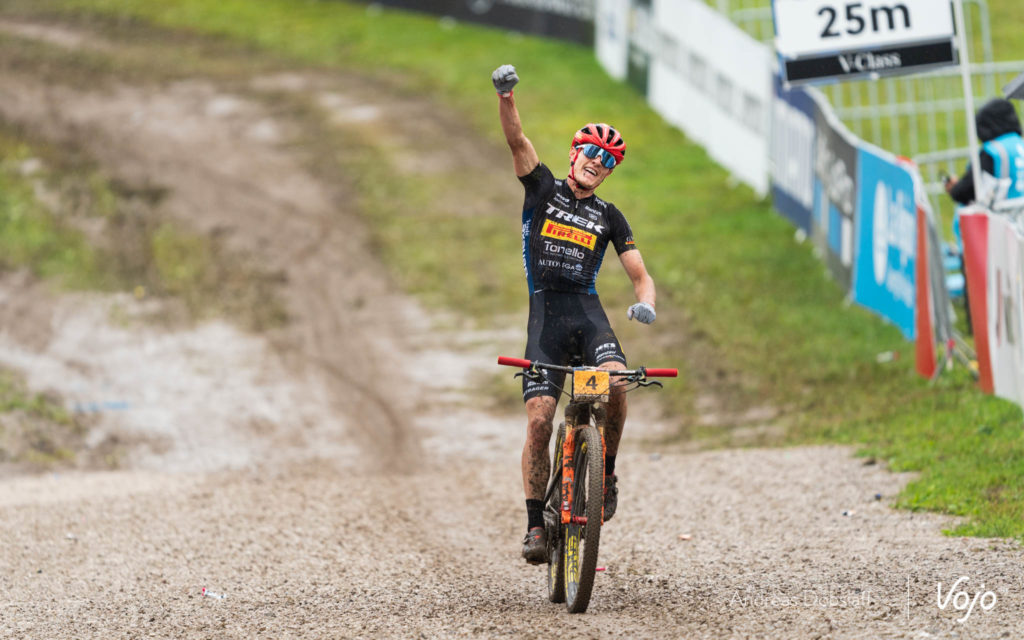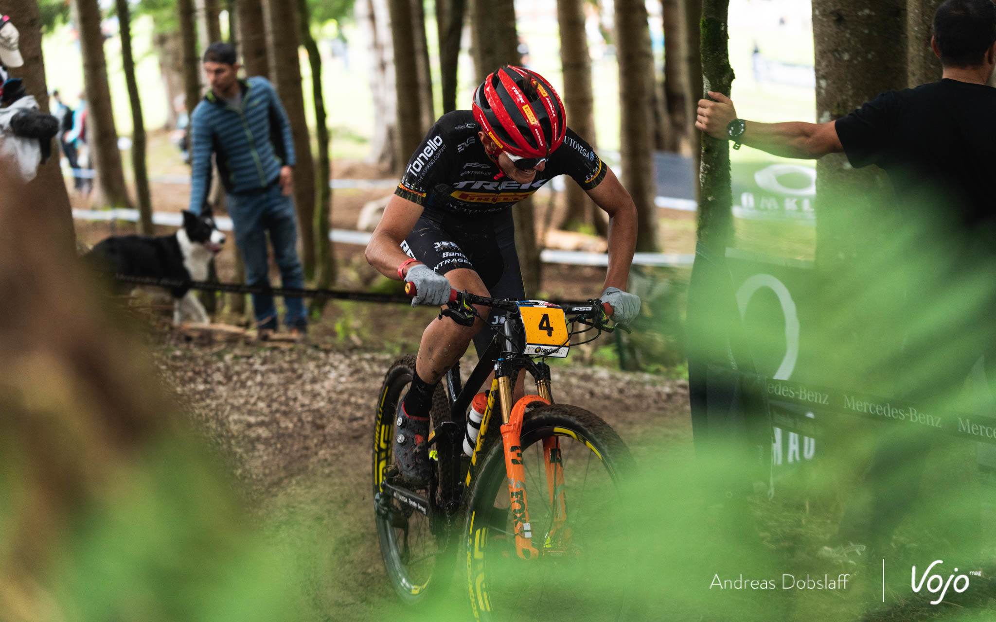 En tête de course, un trio s’est isolé au fil des tours et c’est finalement Simone Avondetto qui s’est montré le plus fort dans la dernière boucle. C’est sa première victoire de la saison, après avoir fait preuve d’une belle régularité dans le top 5 jusque-là (3e à Albstadt, 5e à Nove Mesto, 4e à Leogang).