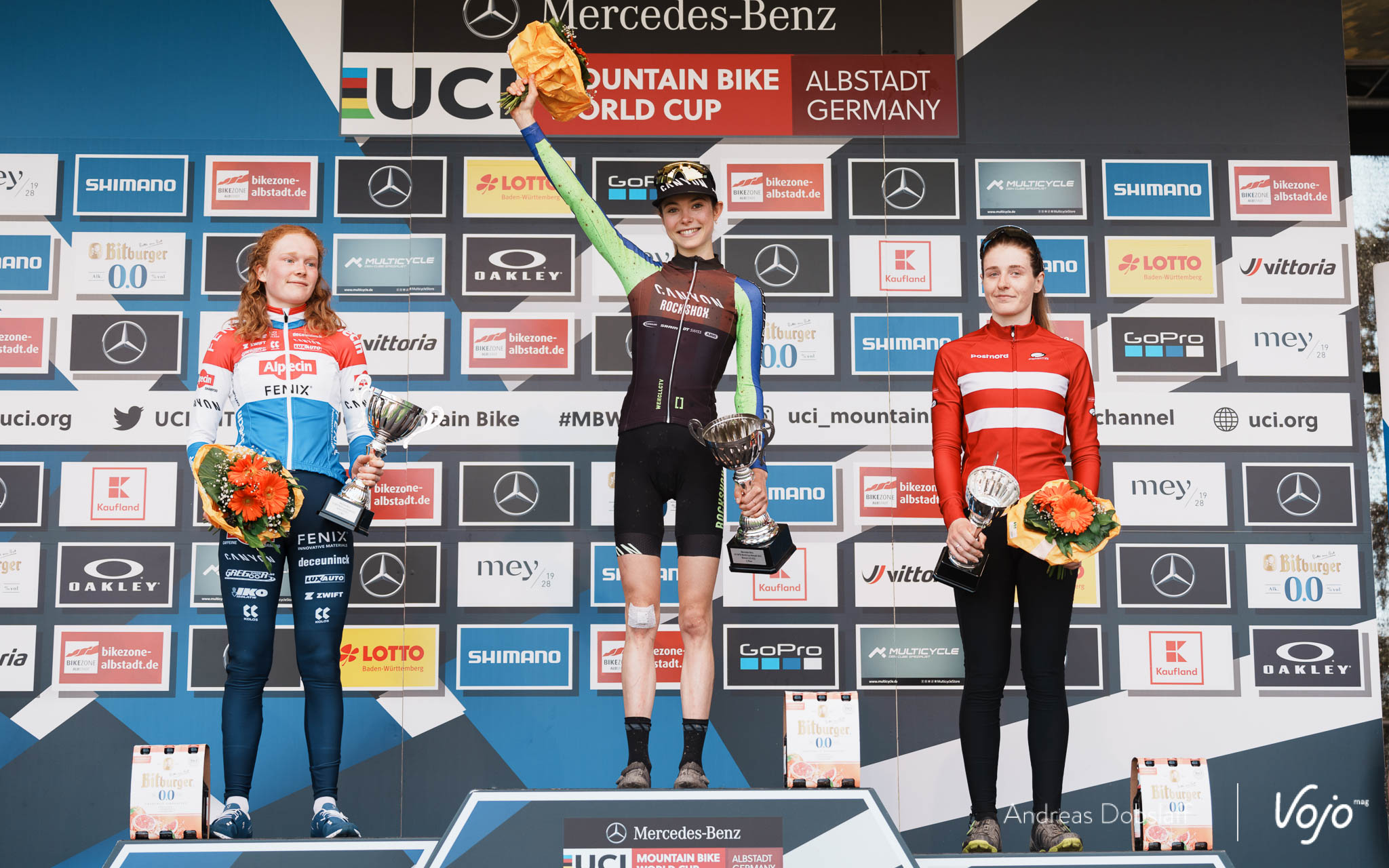 4e pour l’ouverture, la Danoise Sofie Pedersen gagne une place et monte sur le podium en prenant la 3e position. Deuxième des championnats du monde Juniors l’année dernière derrière Line Burquier et passée sur la route avec l’équipe Cofidis cet hiver, Olivia Onesti prend la 4e place pour son retour sur le VTT. Le podium était même un temps envisageable mais la Française n’a rien pu faire face à la fin de course supersonique de Sofie Pedersen. Enfin, Giada Specia, 3e à Petrópolis, clôt le top 5.