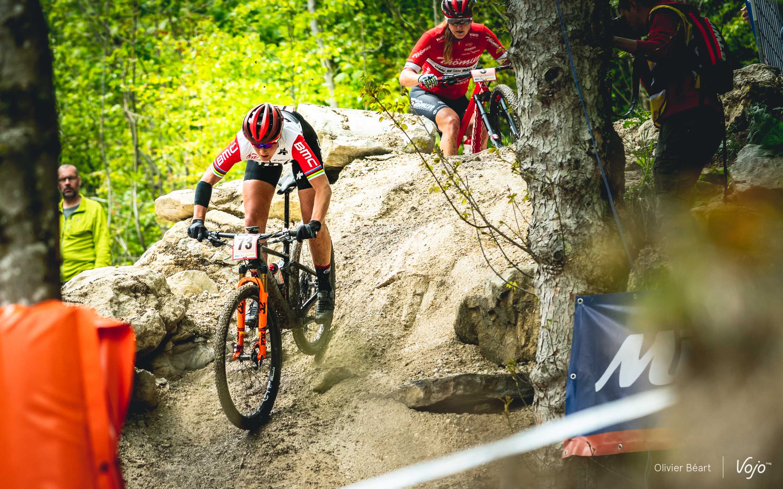 Derrière, la poursuite s’organise mais pas forcément avec les pilotes habituelles. Si Jolanda Neff est actuellement 2° au classement général, celle qui a fait le plus trembler Kate Courtney sur ces deux premières manches est Anne Tauber.