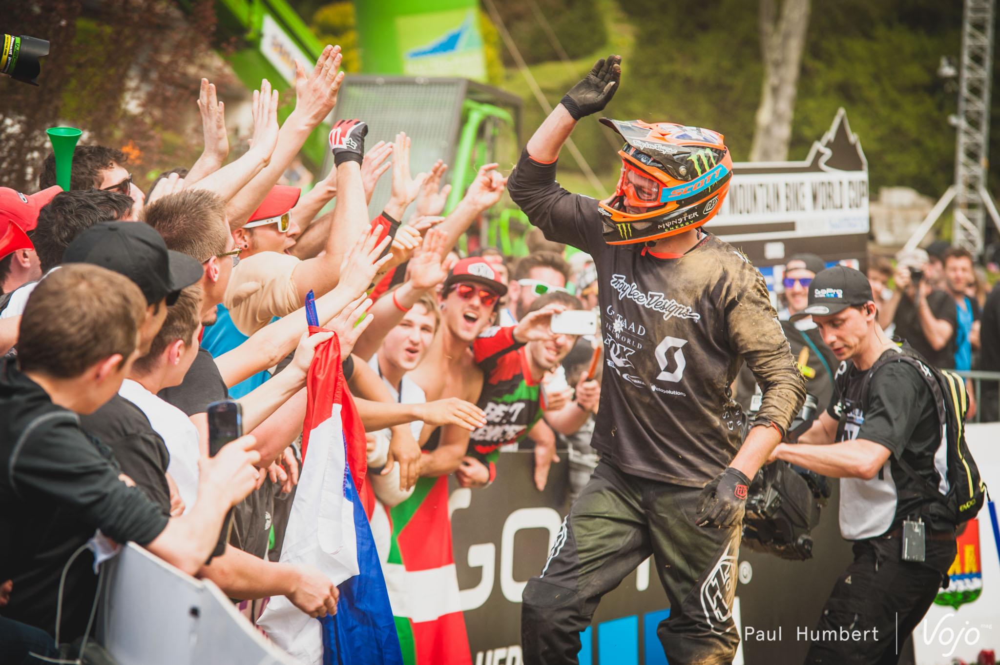 sans titre-3-3Patrice s’arrête un instant pour insister sur un point : « Nous ne sommes rien sans nos 150 bénévoles. Ils travaillent ou font leurs études la semaine et ils se lèvent tôt le week-end pour travailler avec leurs pelles et leurs pioches. Il se font plaisir et ils travaillent mieux ici que dans leurs boulots respectifs ! » Pour Patrice, l’exemple à suivre, c’est la coupe du Monde de Fort William. Dans les prochaines années, les signaleurs présents le long de la piste suivront des stages afin de pouvoir réagir dans toutes les circonstances : « Nous ne prenons pas n’importe qui comme Marschall, il y en a 30 dont 4 chefs et ils sont tous de vrais VTTistes. » Cette année, un partenariat a été conclu avec la marque Commençal qui équipera les bénévoles. Toute ce groupe, « c’est une belle famille ».