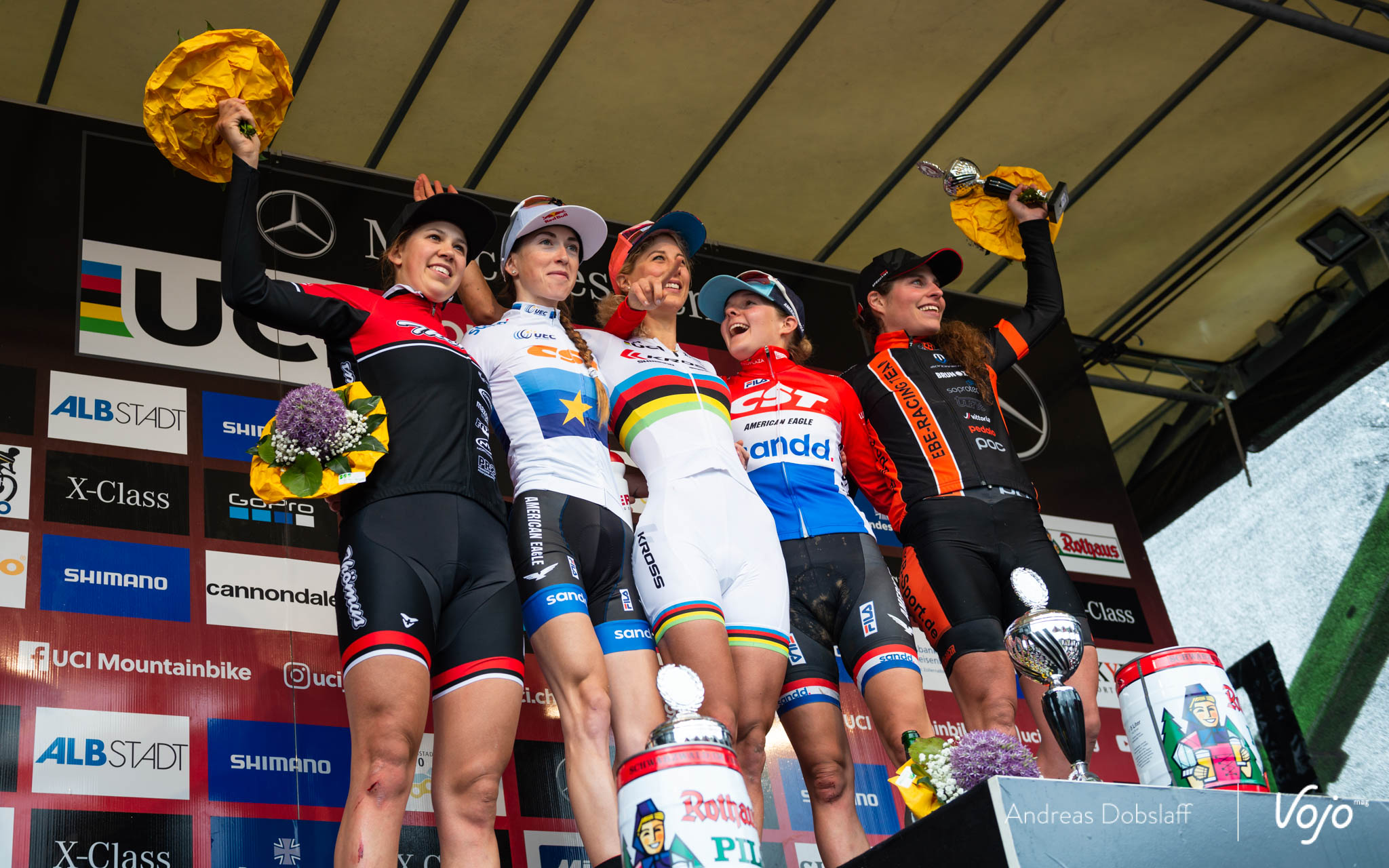 Pauline Ferrand-Prévot est la première Française : elle se classe 9ème. Une place pas vraiment dans la lignée de son début de saison, mais plus qu’honorable dans les conditions du jour. A Albstadt, il y avait à gagner, mais aussi beaucoup à perdre. L’Américaine Kate Courtney, après avoir débuté la course dans le lot de tête, finit 10ème.