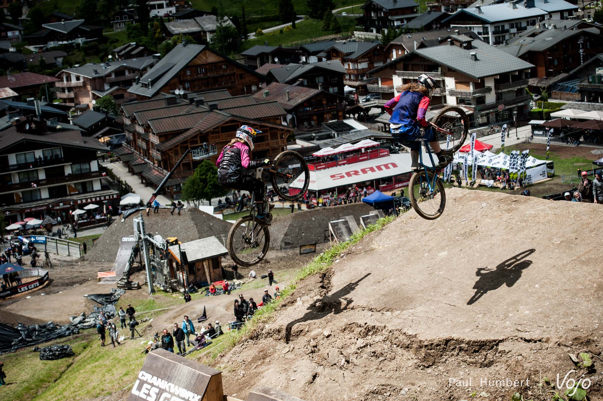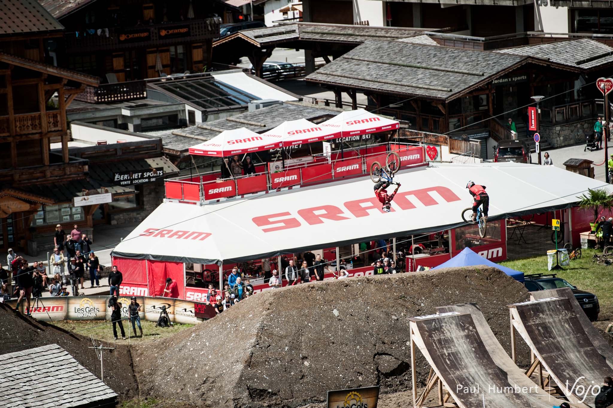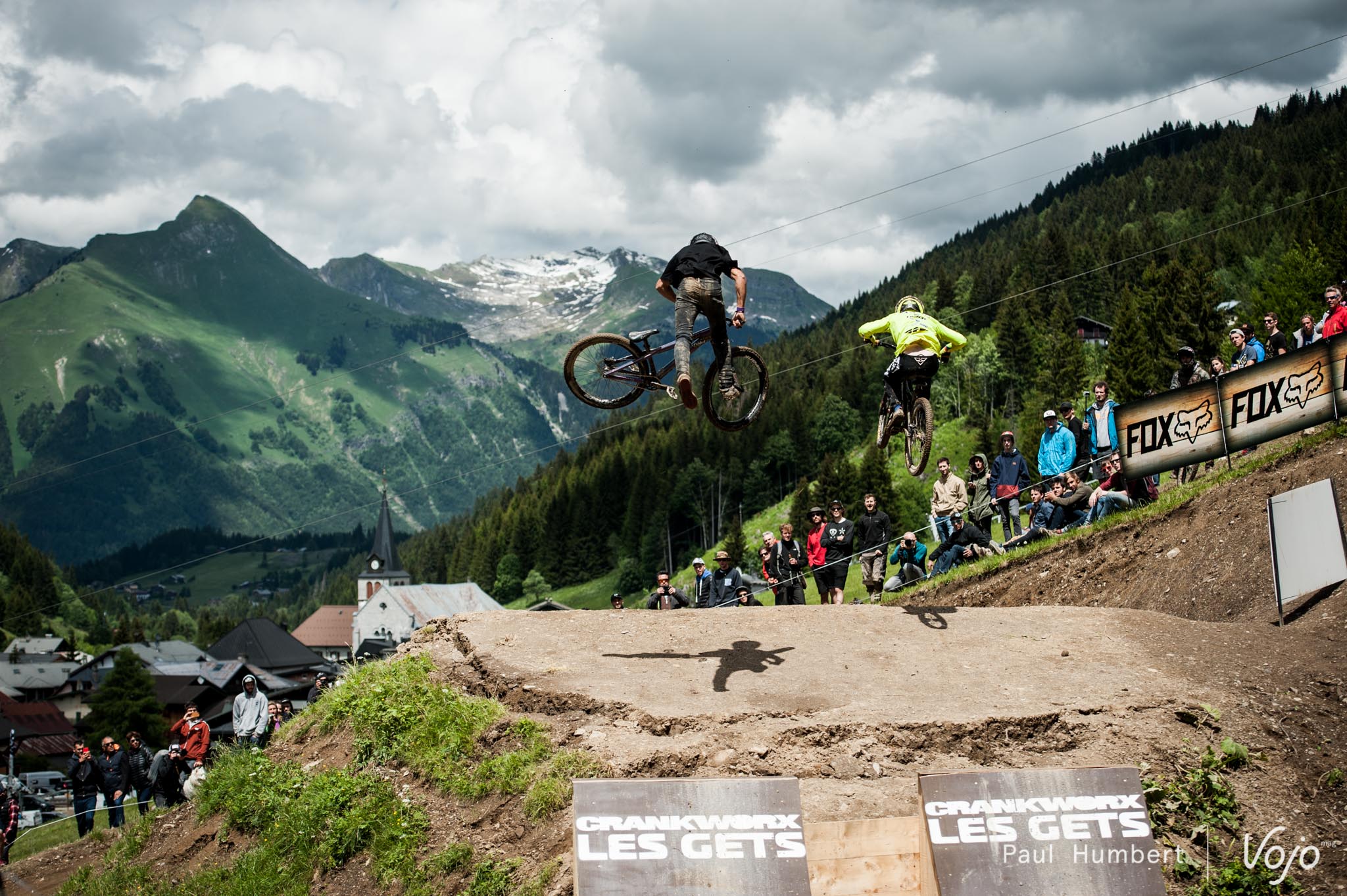 Bienvenue aux Gets dans les Portes du Soleil. Le festival VTT de référence pour les disciplines gravity, c’est les Crankworx ! Pour les trois prochaines années, l’étape européenne du festival marquera un stop dans la petite station alpine. Tous les meilleurs slopestylers, dirters et descendeurs sont au rendez-vous et guettent le ciel car la météo semble ne pas vouloir faciliter la tâche des organisateurs. Les reports et les annulations se succèdent mais tout le monde est prêt à foncer au moindre rayon de soleil. Nous vous proposons aujourd’hui nos premières images sur place et les résultats du Dual Slalom – Speed & Style :